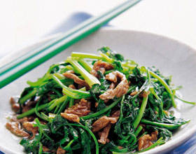 炒豌豆苗   制作工艺:清炒 口味:清香味   主料:豌豆苗400克 配料:冬笋50克 调料:植物油30克 盐2克 白砂糖10克 味精1克   1.拣去豌豆苗中的杂质,清洗干净,沥干水。   2.将冬笋去壳取肉洗净,先切薄片,再切极细的丝。   3.将炒锅置大火上烧热,倒入植物油,烧到油冒青烟是放入豆苗和冬笋丝迅速煸炒,随即加入精盐、白糖、味精和少许开水,炒匀即出锅装盘,上桌供食。