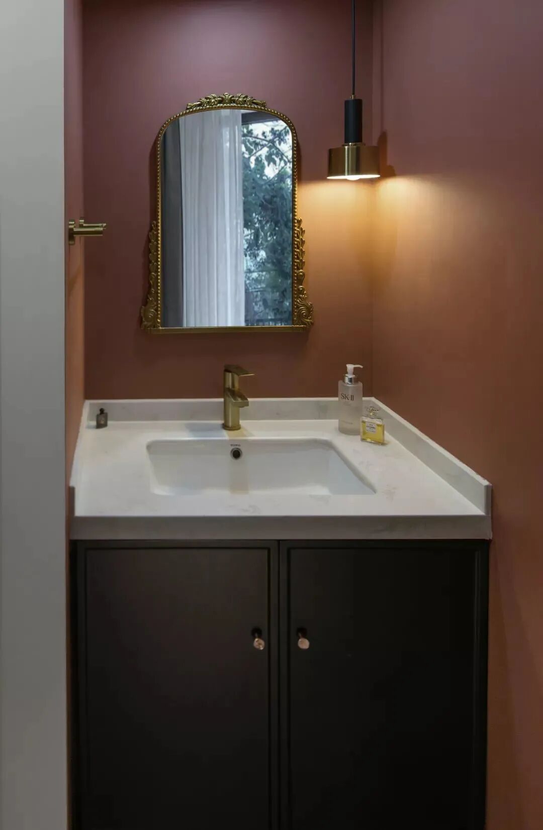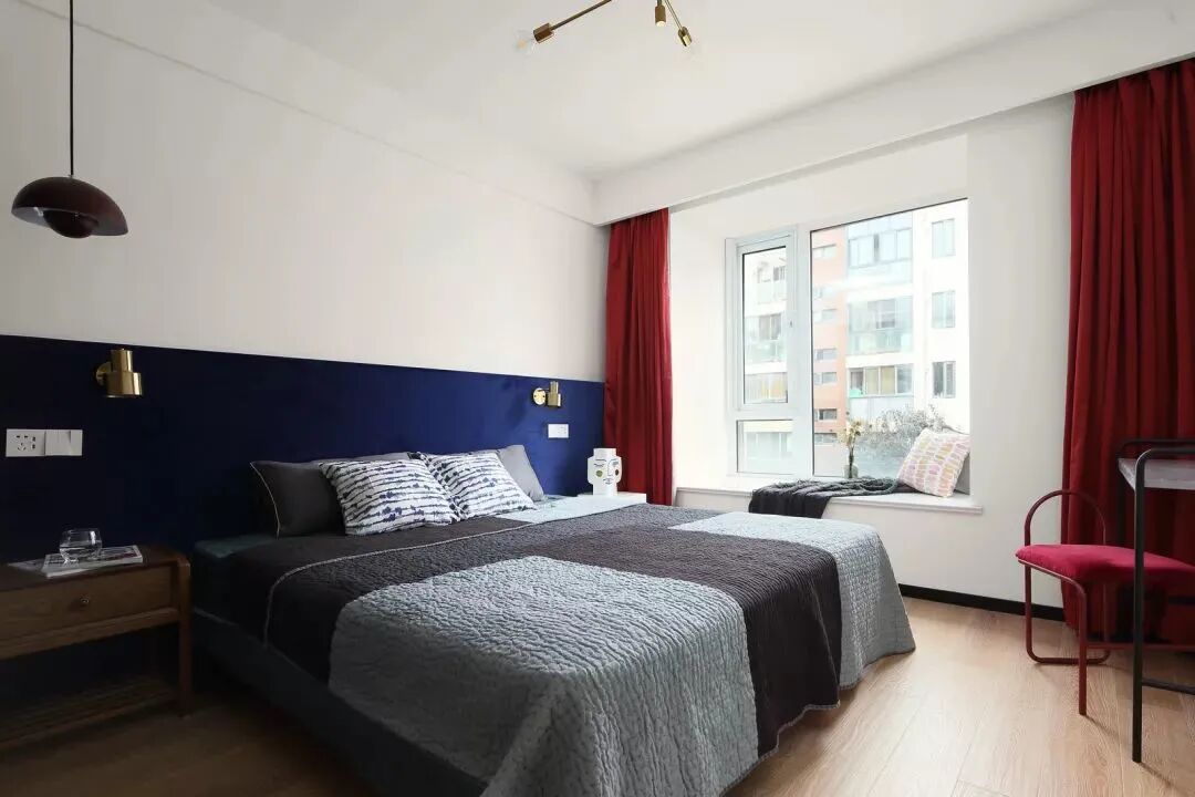 两个卧室的风格并不完全相同。墙面与窗帘的撞色,有趣富有个性,生气满满。飘窗的设计,又让人多了一处休闲放松的去处。另一个房间灰色系为主体,有趣的物件摆设让房间有了不一样的感觉。卫生间是干湿分离的设计,红色的墙,铜色包边的镜子,有一些复古的感觉。角落的吊灯暖光照射,温馨不失浪漫。 洗浴间用了三种款式的瓷砖,花样虽不同,但色系统一,推拉门的设计也非常方便。 今天给大家介绍的现代简约风,大家喜欢吗?不管户型大小,现代简约在预算和设计上都很好把控,如果喜欢的话,欢迎联系我们!声明:文中部分文字和图片来源于互联网,版权归原作者所有,如有侵权,请联系我们。