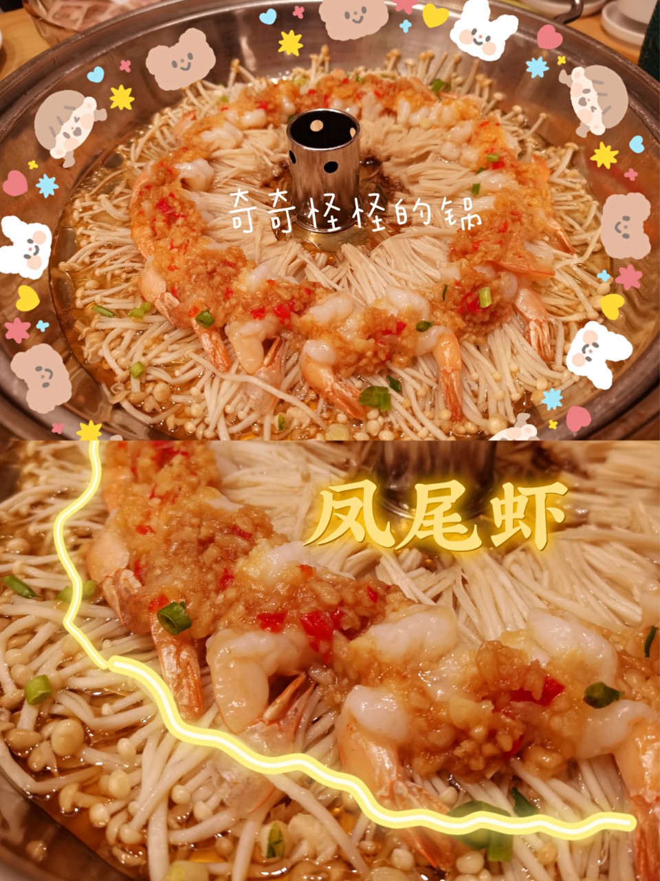 这道菜的盘子…依旧是“抽象风”有点点夸张,底下是金针菇,上面是去壳蒜蓉,味道偏淡~不过虾肉也蒸很嫩,这道菜算是清盘比较快的~