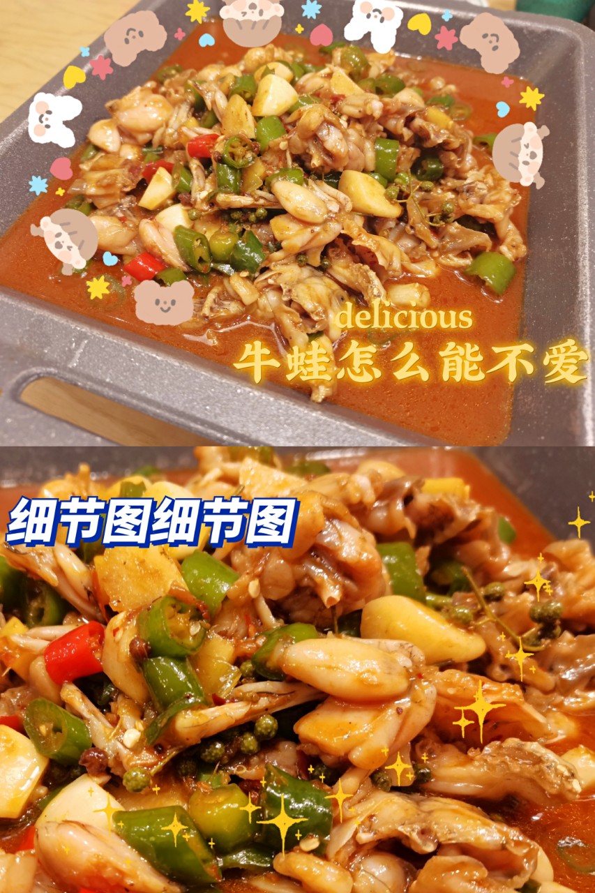 这个菜的全名我也忘记了…然后没搜到,里面就是青红椒、莴笋、很多去腥提味的香料,口味适中,蛙肉嫩滑紧实而不柴,不过个头都不太大,量相对有点少还有还有,莴笋不好吃!!