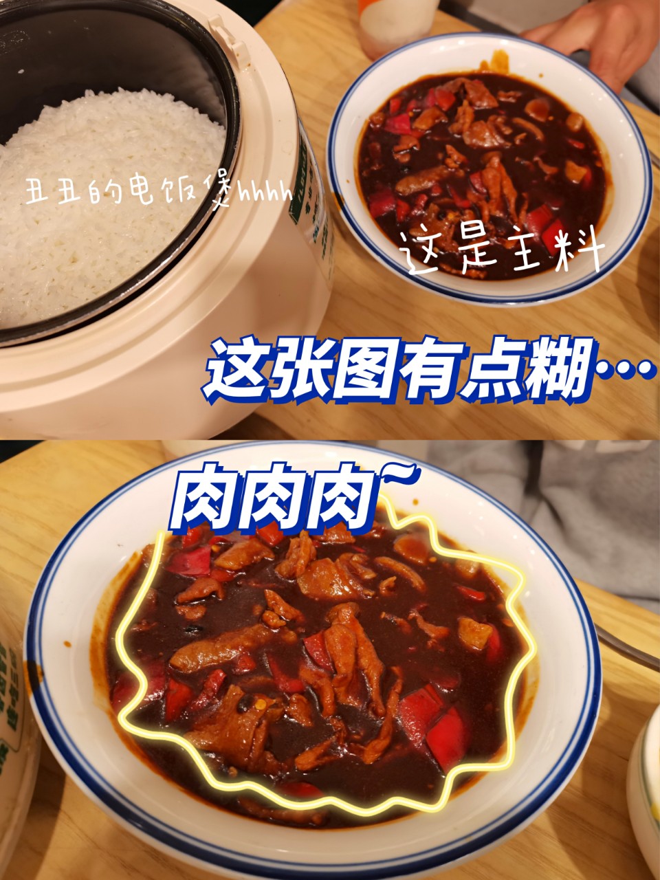 连着电饭煲端上来,服务员会帮忙拌好,米饭被肉汁浸润,颗颗分明,颜色红亮,吃起来还有猪油香,就是如果能都是瘦肉就更好了~每人一碗大概能装六七份吃多了到后面就会有点腻~