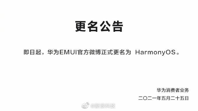 最新消息!华为将发布鸿蒙手机操作系统,华为EMUI微博更名HarmonyOS |