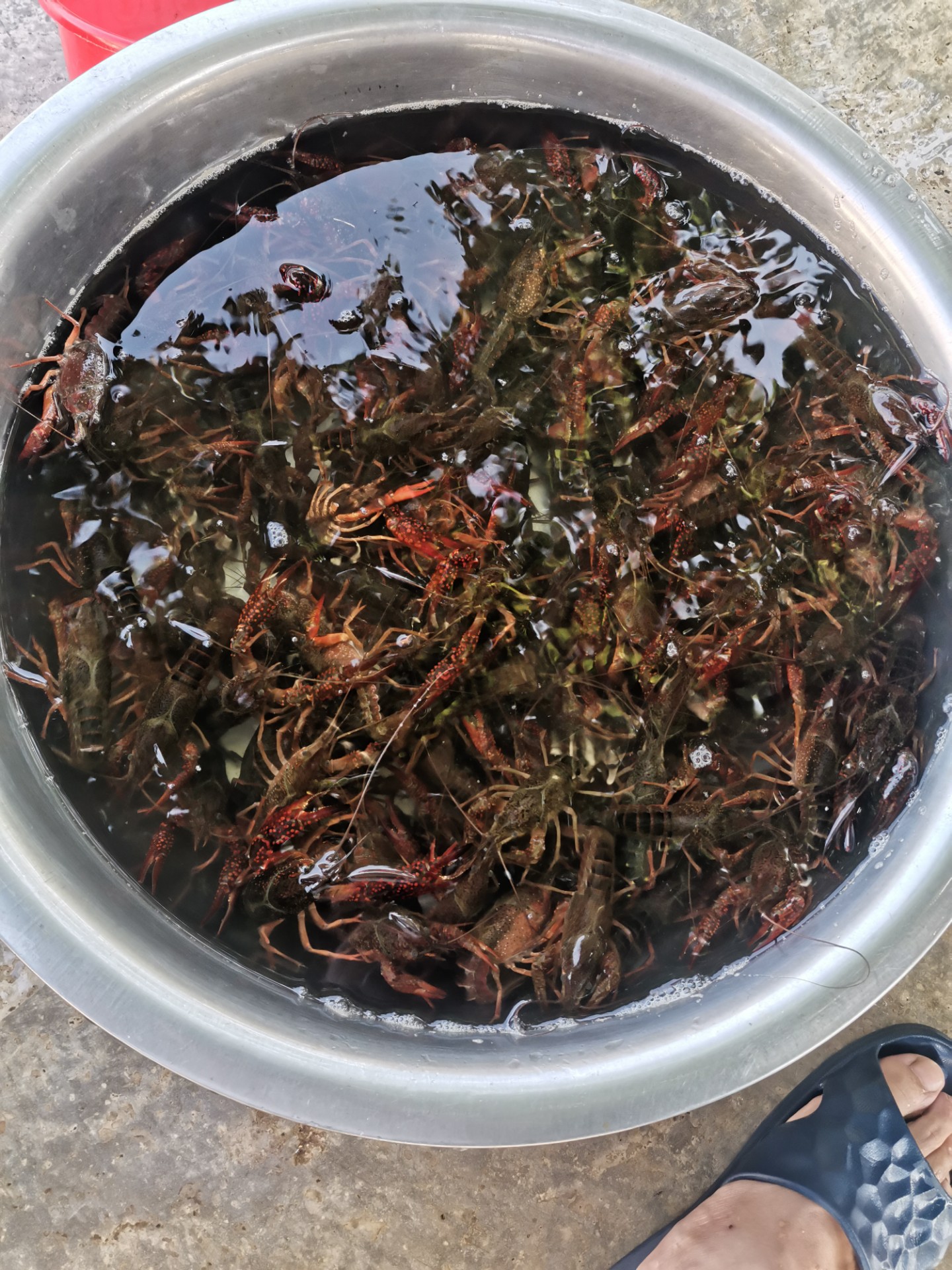 家住农村就是方便,早上骑车到龙虾养殖户家里买的大龙虾。十几块钱一斤。