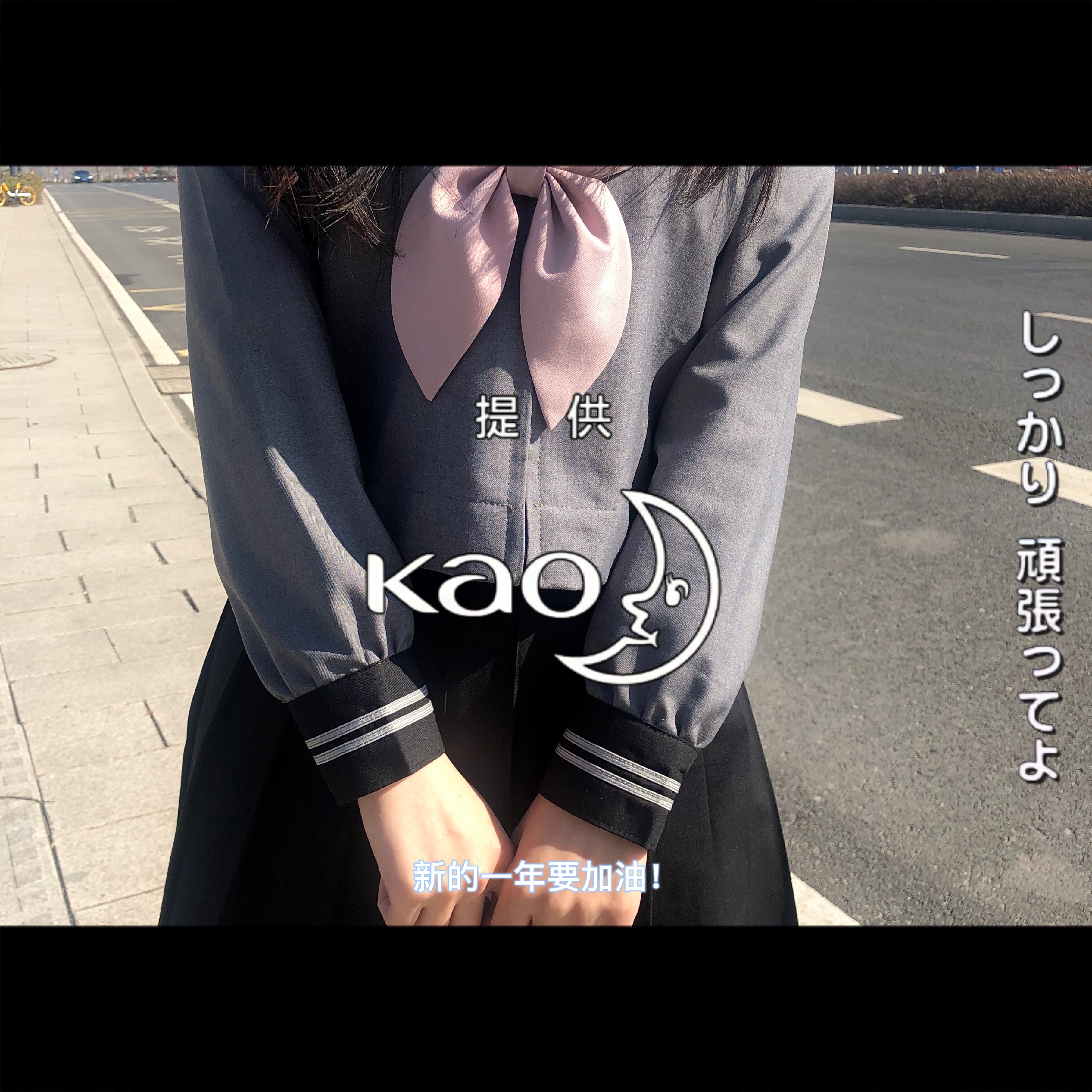 灰色系水手服搭个粉色领结就不会那么沉闷了~