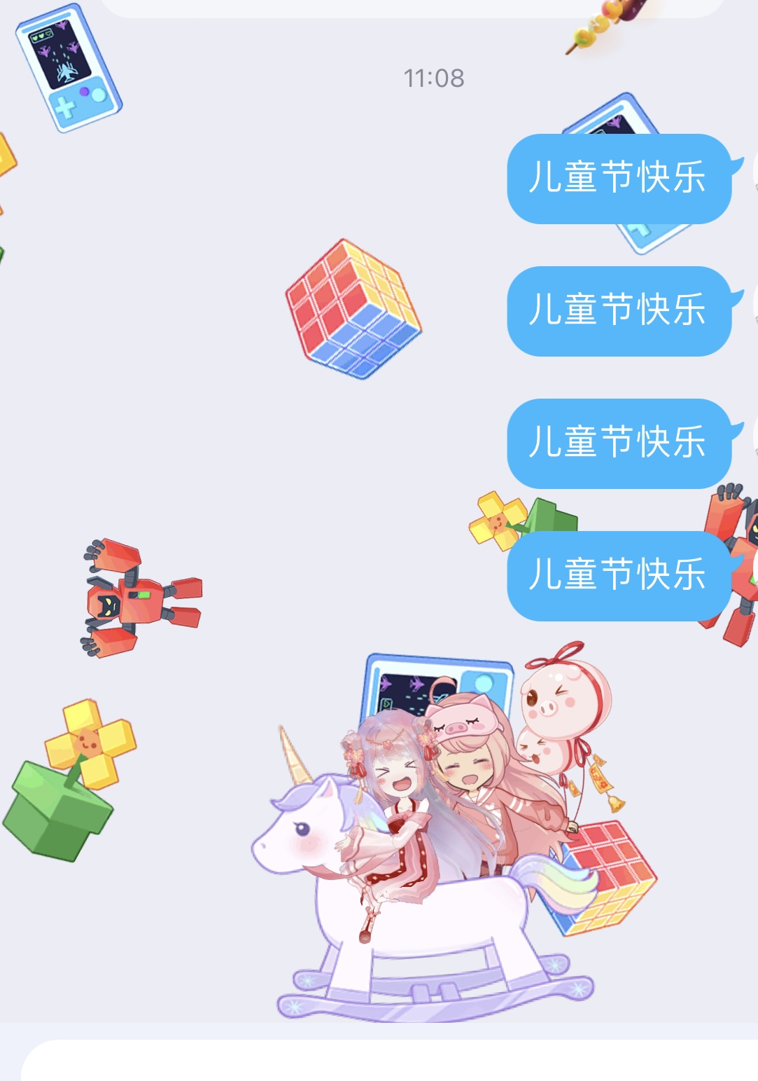 今天在QQ聊天里发送“儿童节快乐”有彩蛋!太可爱了,感觉掉落的动画都是童。大家快去玩