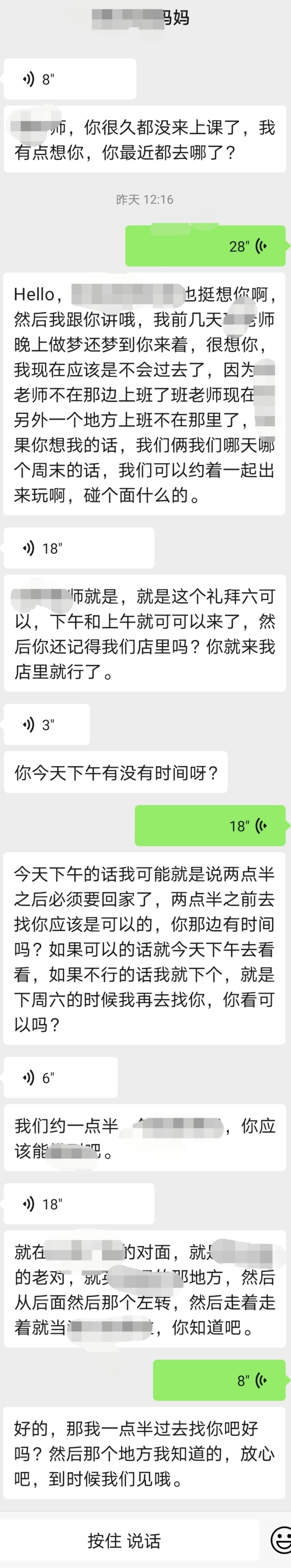 这事真的很巧!晚上睡觉梦见了之前教的一个学生,醒来想着这事,还觉得很奇怪,怎么会梦到他,毕竟我已经挺久没教课了!前一晚熬夜加班,醒来的时候已经很迟了,刚打开手机,就看到他发来的微信,说今天去上课又没见到我,已经过了很久才告知他原因,我已经离职很久了,只是一直没说而已,就说想约出来碰面一起玩,因为下午还有事情,大概两点半之后要回家,就约在下午一点半碰面了,在青峰抹茶那边。