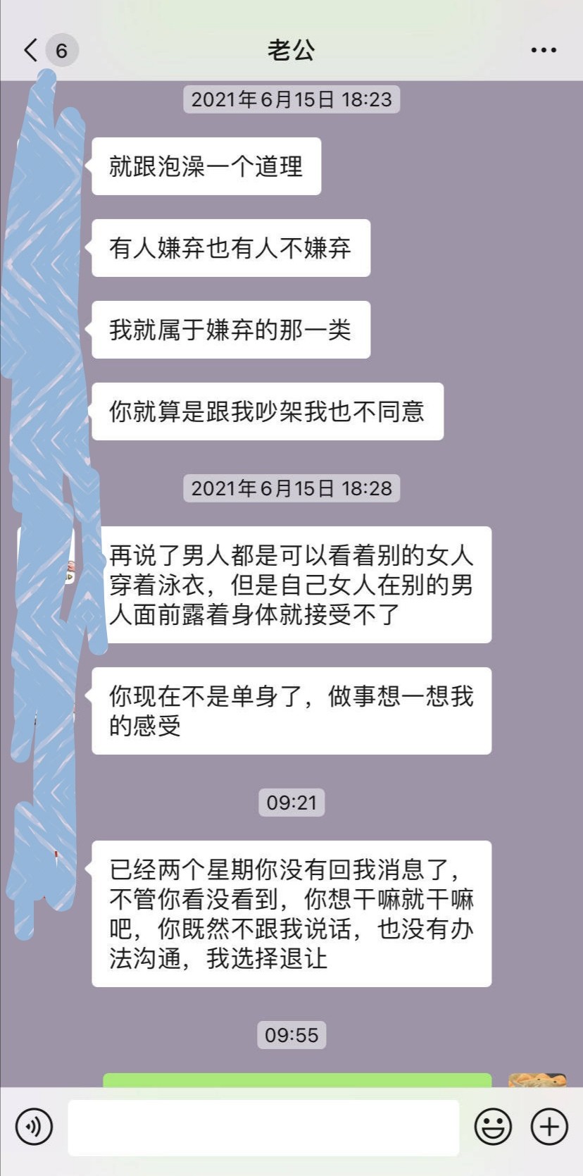 我给自己报名游泳班,老公就是不让我去学,说穿衣太暴露了,会给别的男人看到,要按照他这个说法,我们女的都不用去学游泳了,不想理他,这是我自己的兴趣爱好,和他有什么关系,怀疑他有那个大病