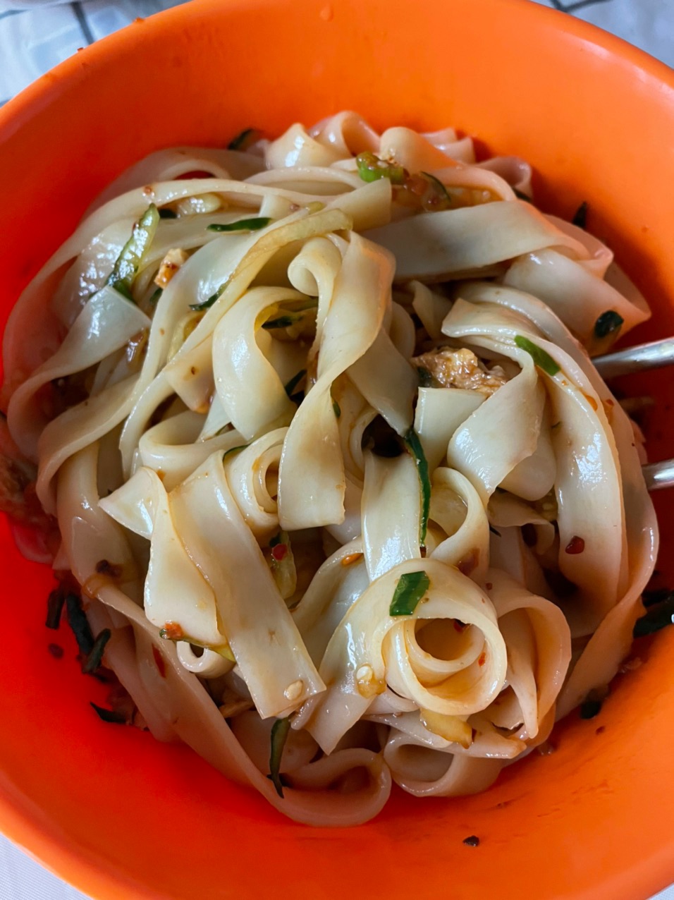 买的现成的凉皮回来自己制作调料,比店里买的好吃,店里的蒜末放太多了,只剩蒜末的气味,其他香味都盖住了