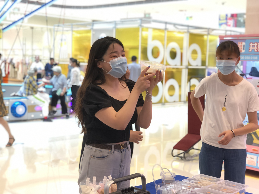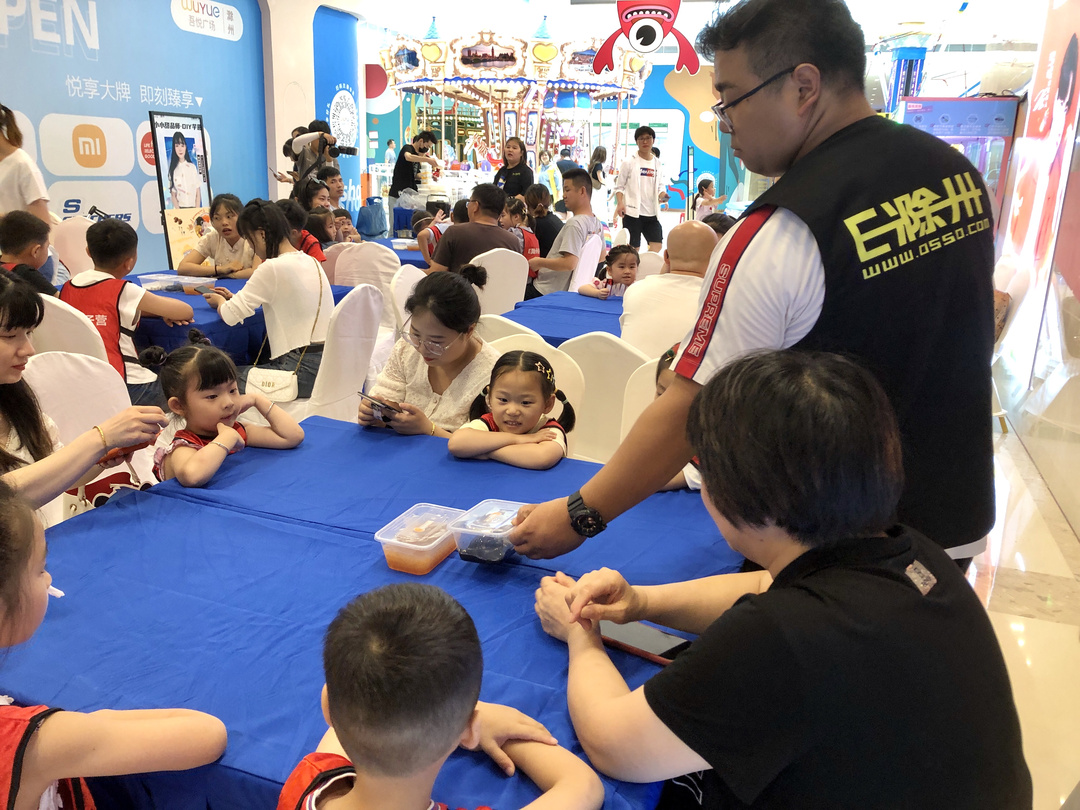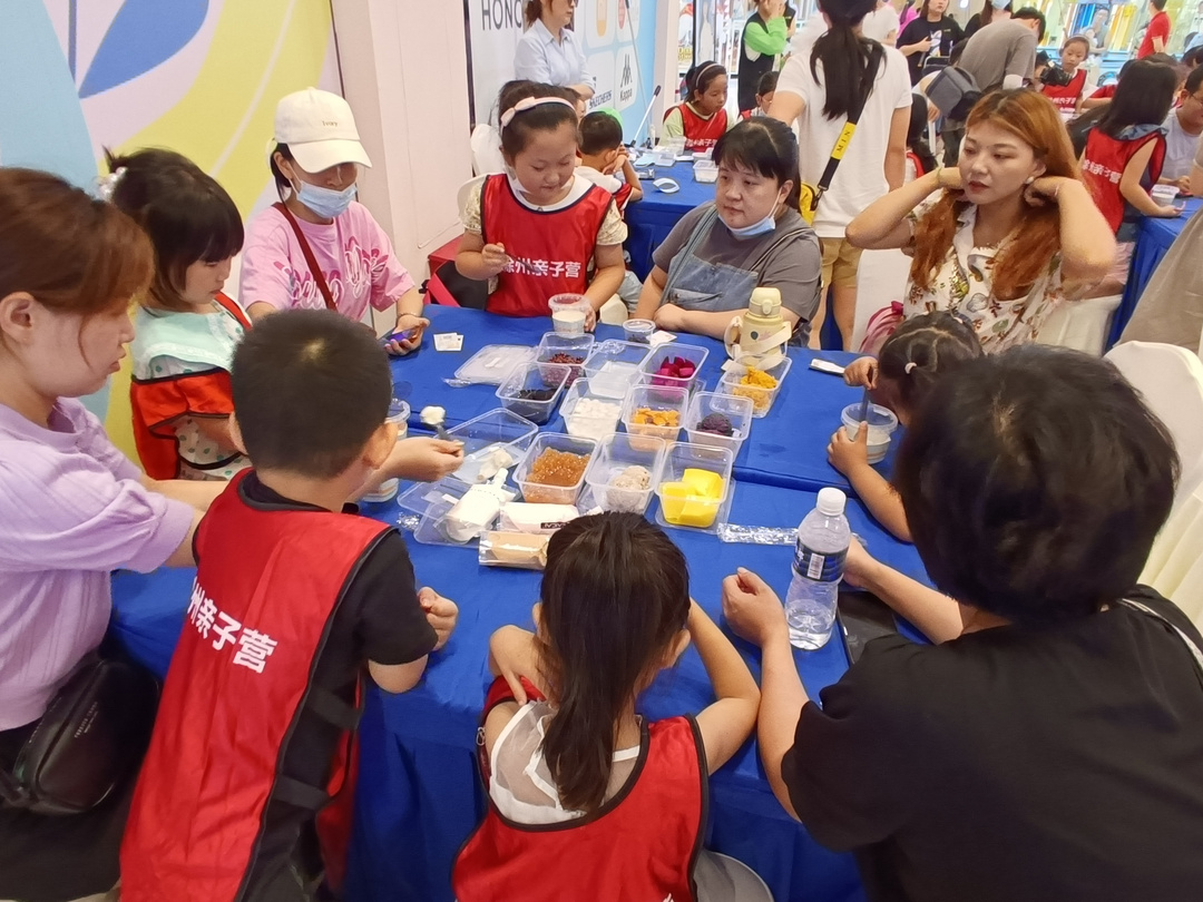 待家长和孩子落座后,现场工作人员开始将准备好的芋圆及可口的小料发放下去。