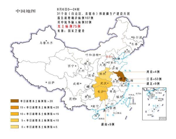 8月6日0—24时,31个省(自治区、直辖市)和新疆生产建设兵团报告新增本土确诊病例75例。