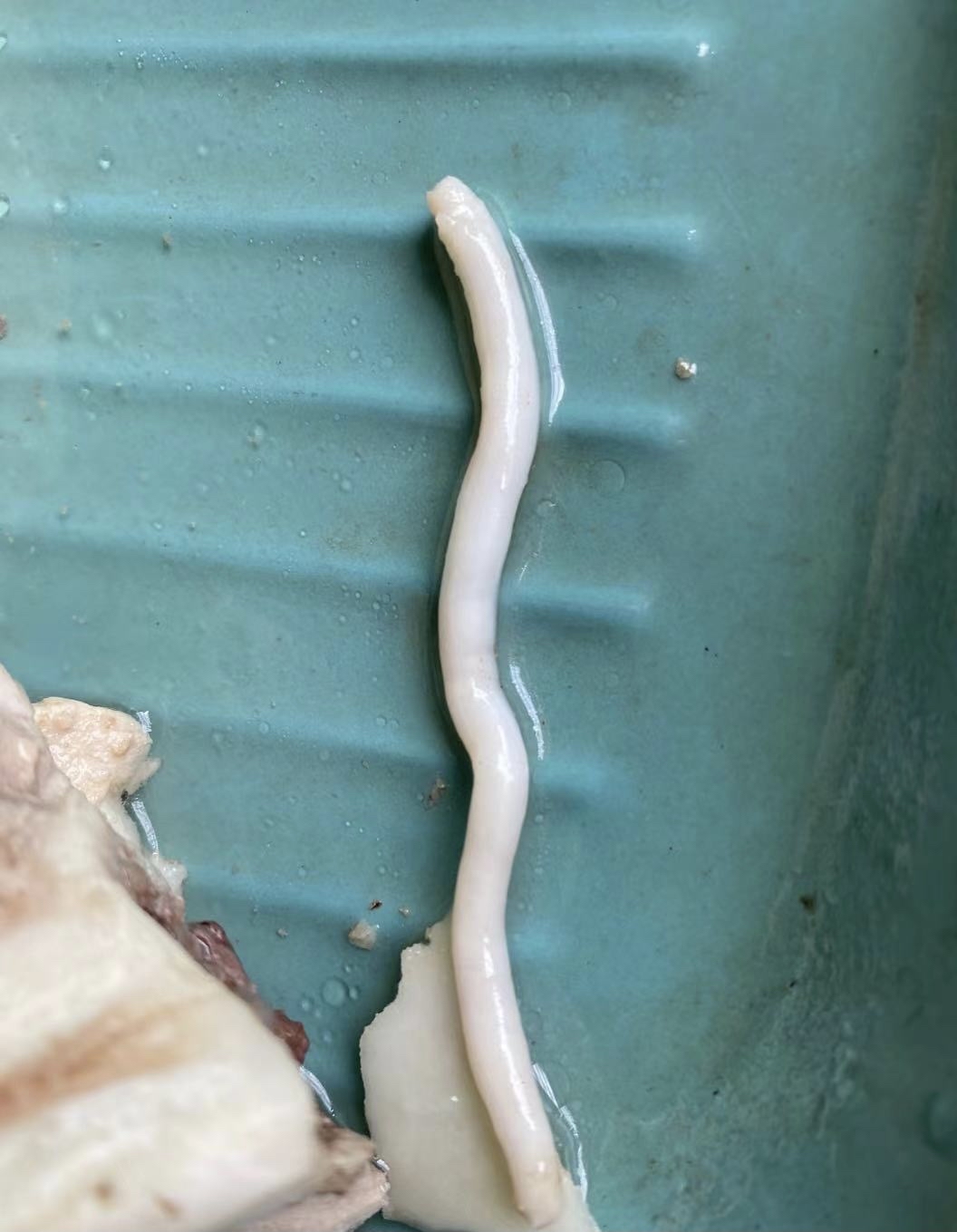 猪肉里这白色东西是什么,白色的,跟蛔虫好像,恶心死了,你们家处理猪肉见到过吗