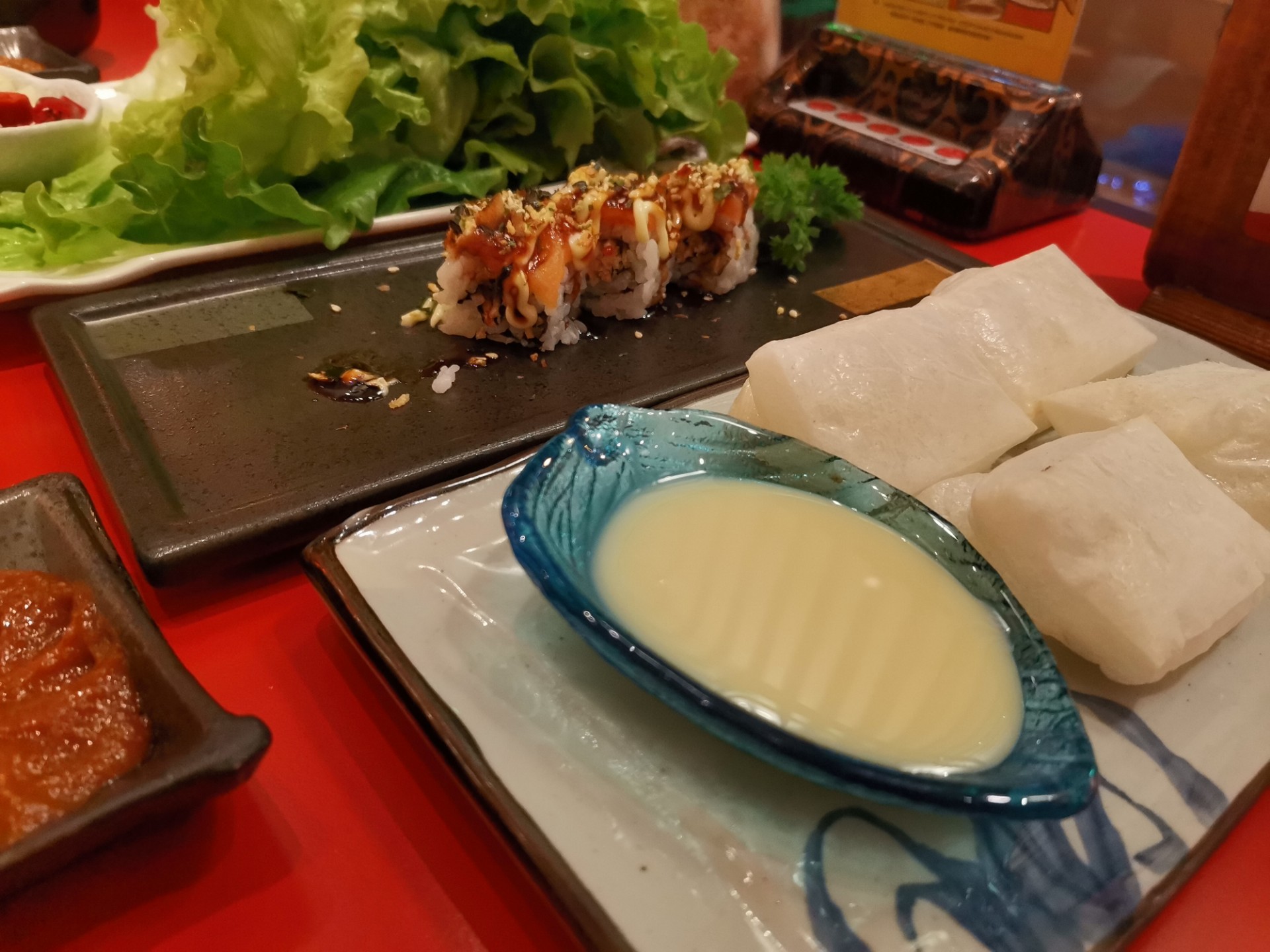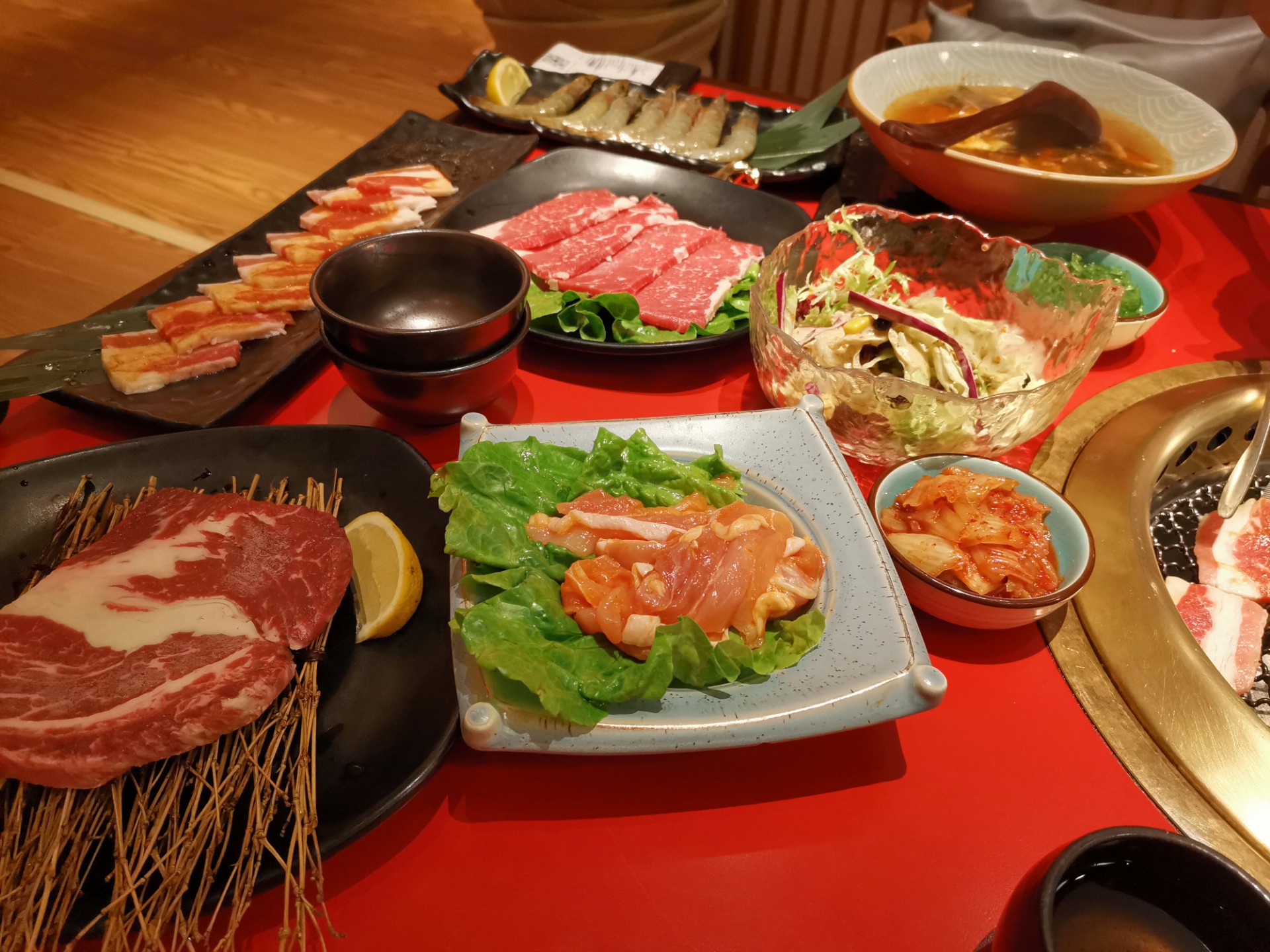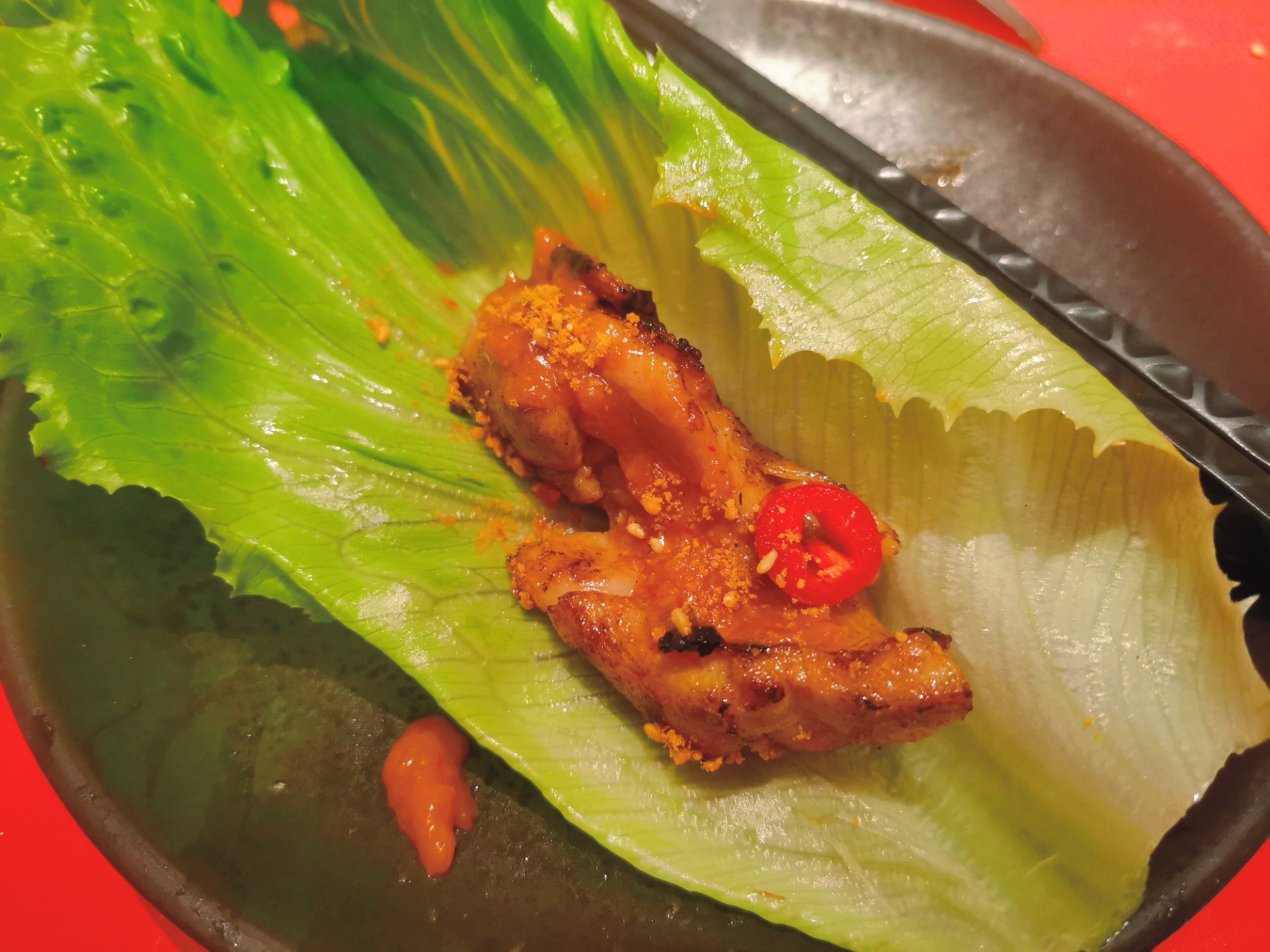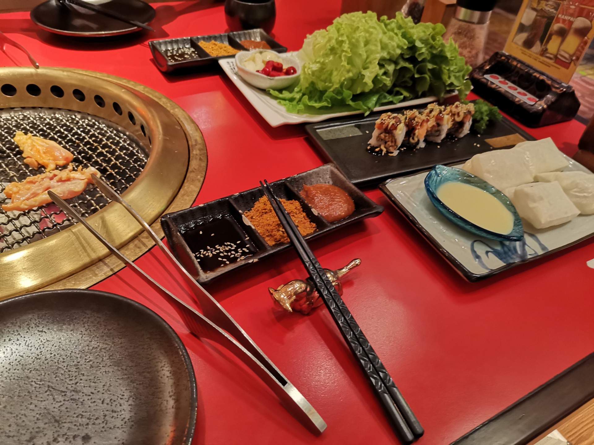 口味:对于糯叽叽星人来说,炼乳年糕真的贼好吃外面脆脆的,特别薄的脆,里面糯叽叽的,上桌恨不得抢。还有鸡腿肉,鸡腿肉是提前加香料腌制过的,烤熟之后放生菜里加一片蒜和#红椒段,一口塞进嘴里,绝了另外他家的牛肉质量真的很好,可惜我不怎么会控制火候,后来服务员小哥哥说可以放在边边慢慢烤,绝了绝了
