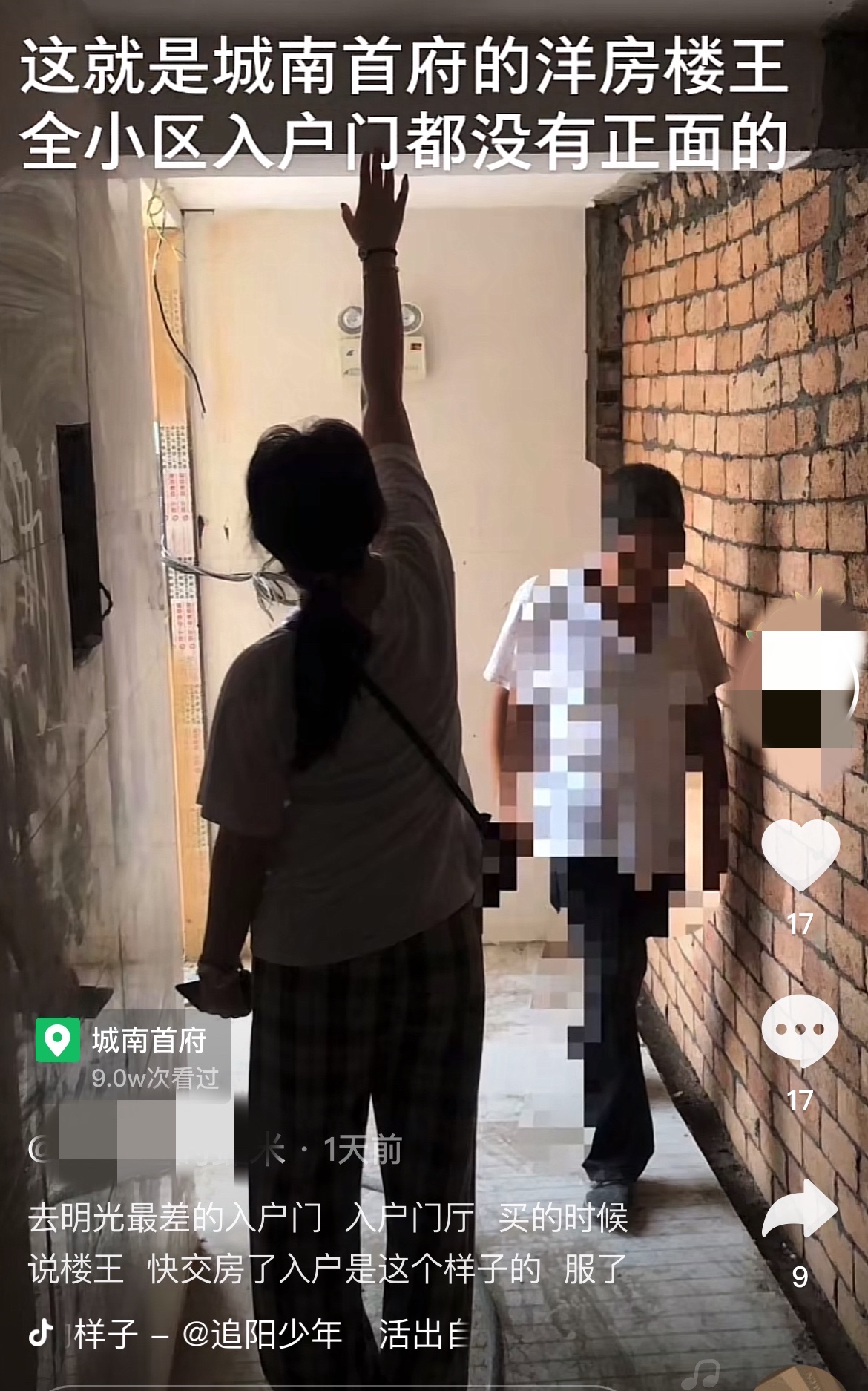 买房还得买现房,又有人买房糟心了,没有入户门,入户第一眼是一堵墙,又窄又矮的通道着实憋屈