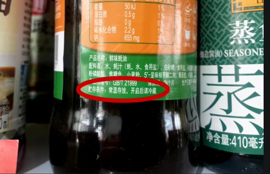 才知道,开盖的耗油需要放冰箱冷藏保存,我家从来都没放过冰箱里,还是放灶台边,一瓶吃半年都不坏