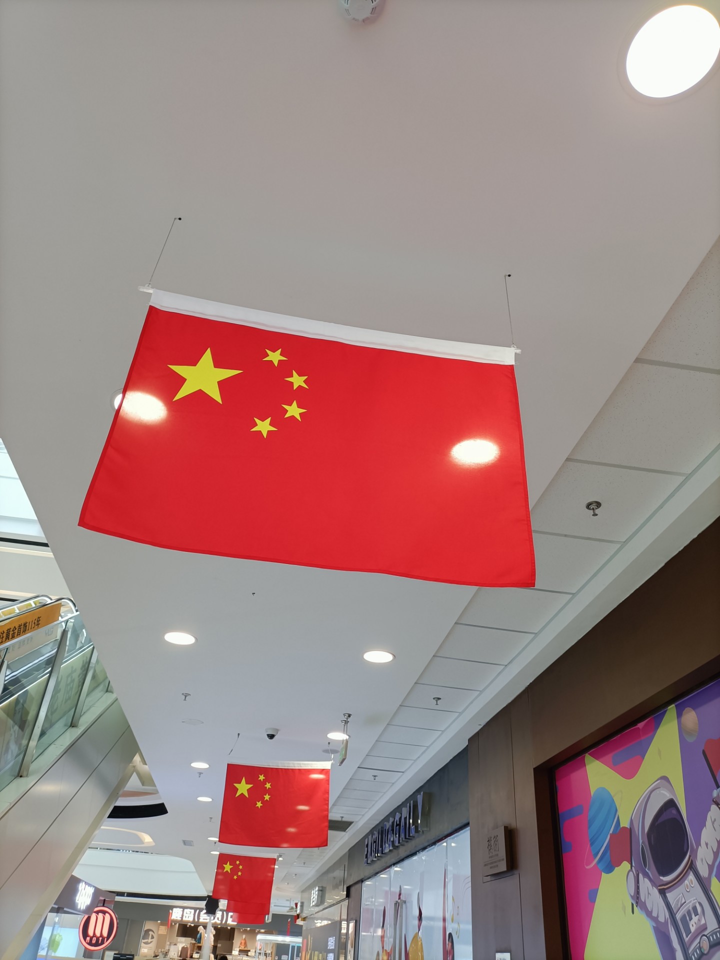 今天去万达广场玩,发现他们把国旗横着悬挂,不知道这样行不行,第一次看见