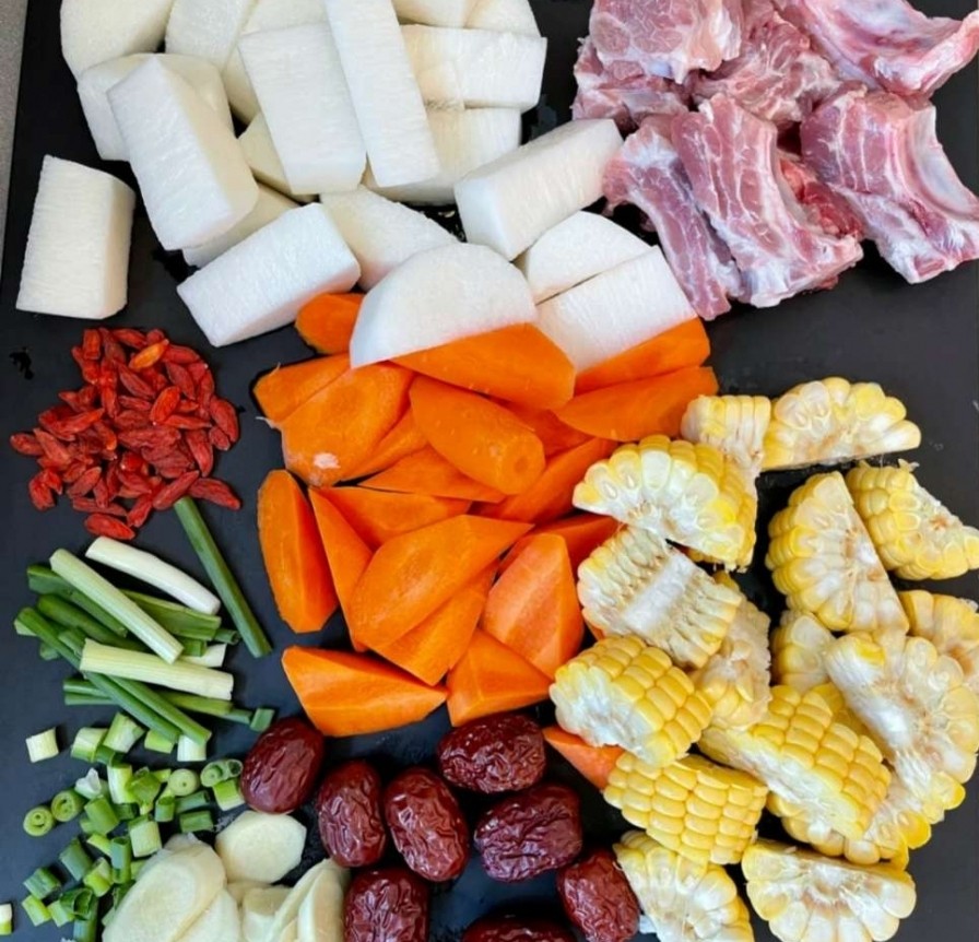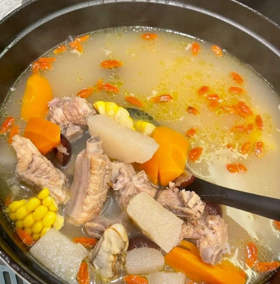 材料:山药,排骨,蚝豉,干贝,玉米,枸杞子,红枣,姜片,青葱,海盐
