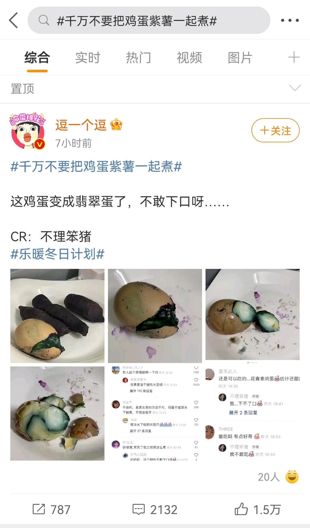 一定是我的打开方式不对!鸡蛋和紫薯一起煮,竟然变成了“翡翠蛋”!哈哈哈哈哈,这能吃吗