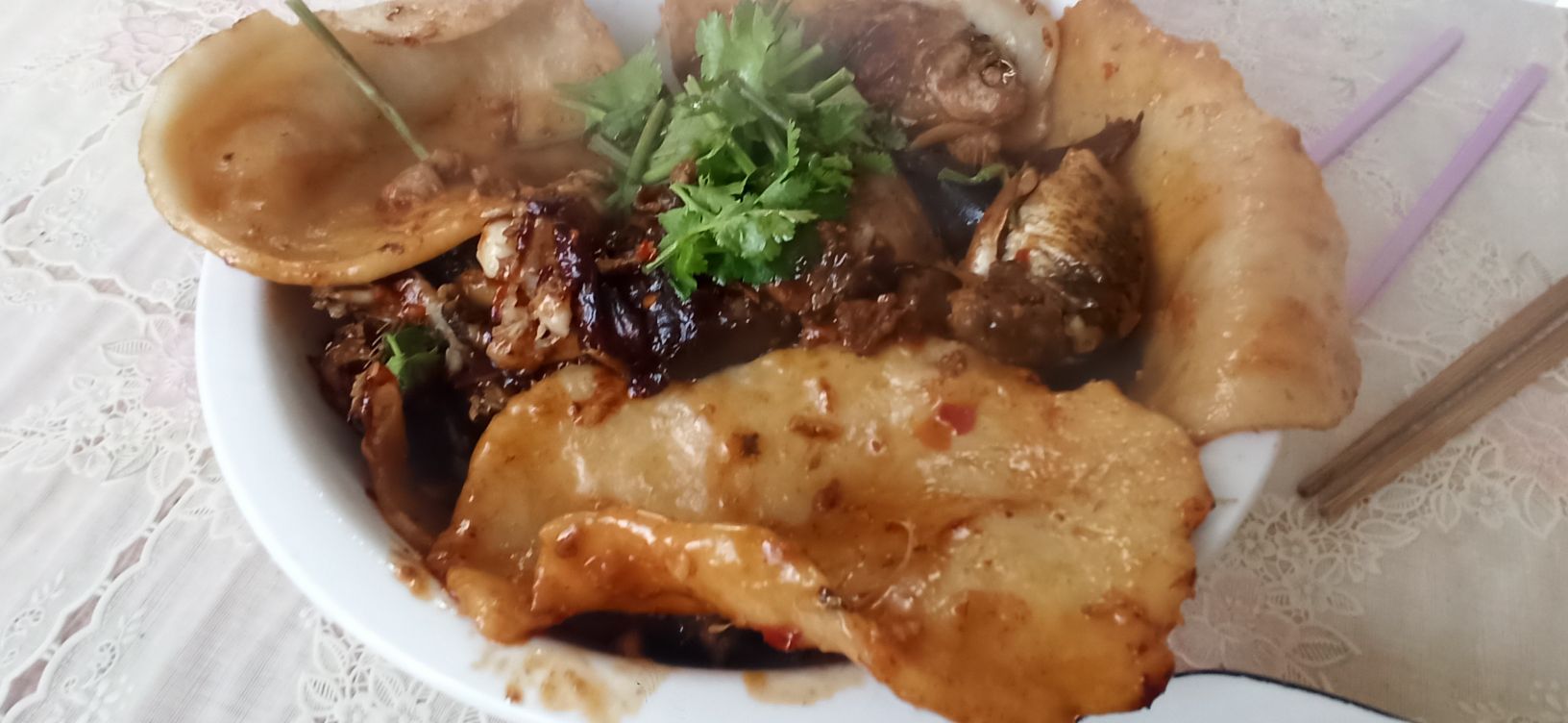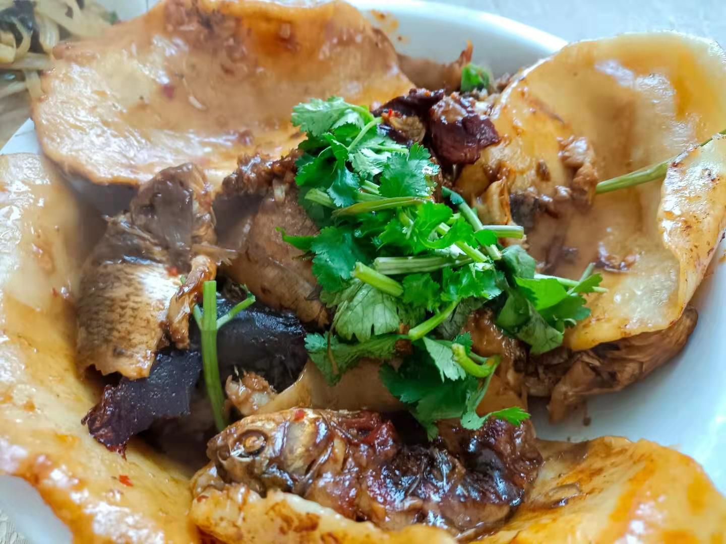原标题:饭点到了,有没有还没吃饭的。我做小鱼锅贴给你吃。