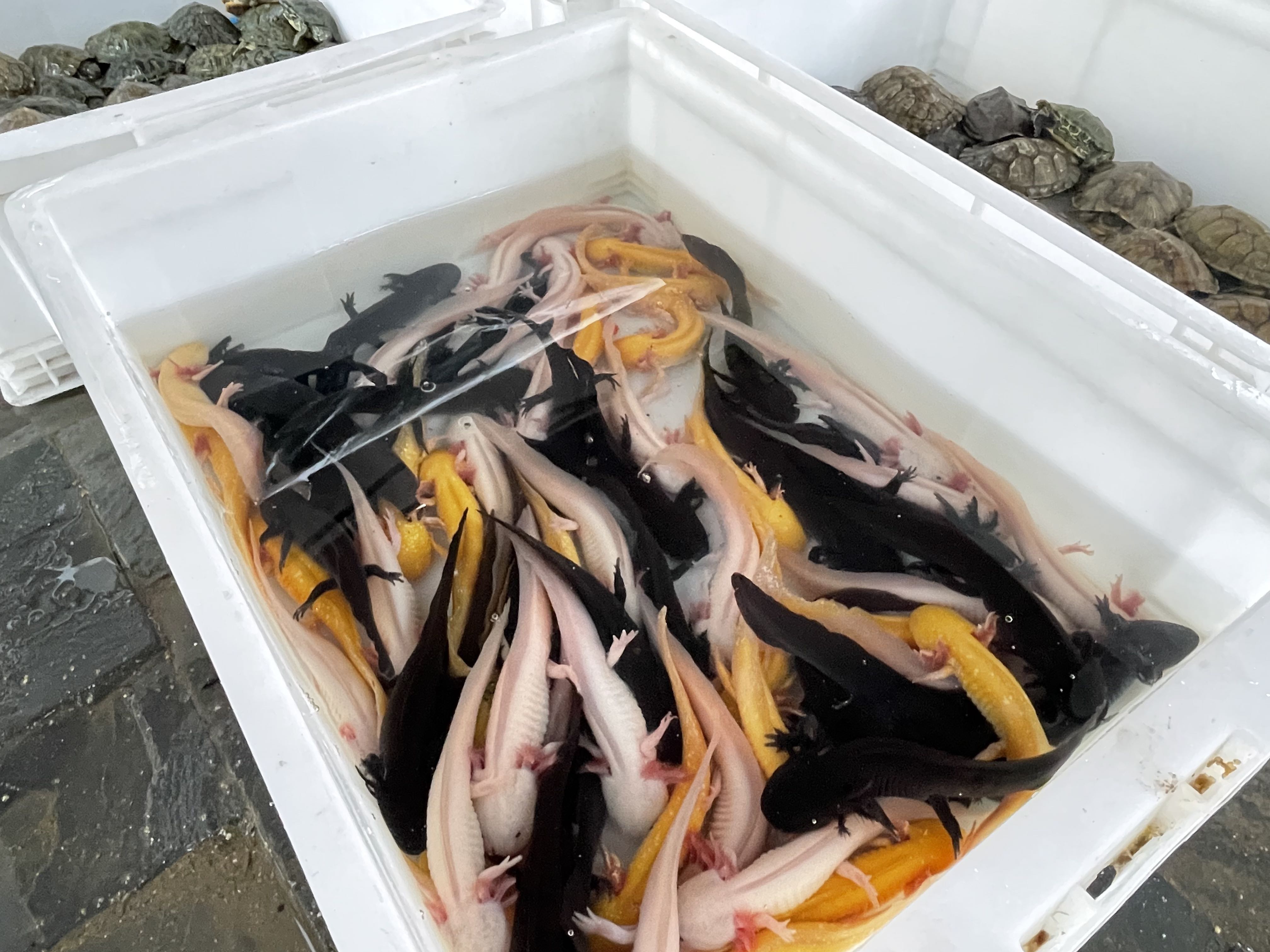 有谁认识这是什么鱼吗?长了四条腿,还有小手掌指头看着很明显,颜色黄黑白三种颜色,有一点像娃娃鱼