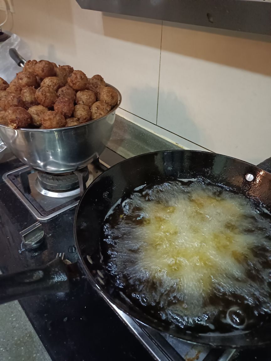 原标题:炸圆子了咯,糯米圆子我喜欢