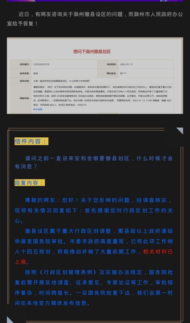 原标题:来安、全椒撤县设区最新进展:相关材料已上报!当前滁州区划工作重点就是撤县设区!