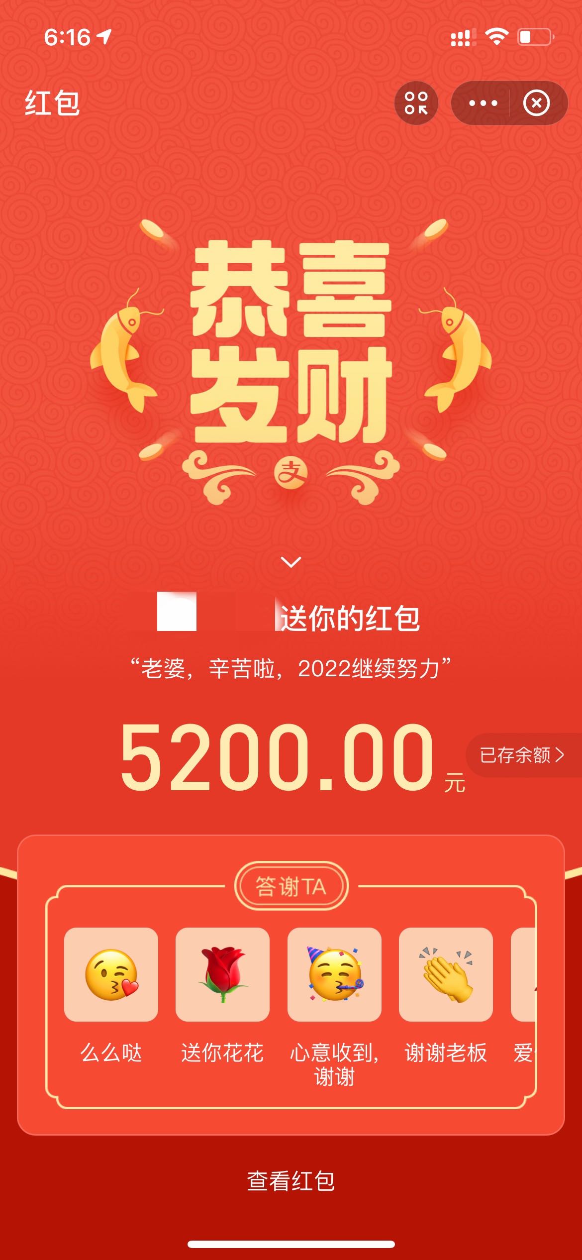 老公发了5000块钱年终奖,钱还没捂热就全发给了我,还多补了两百发了5200,心里暖暖的