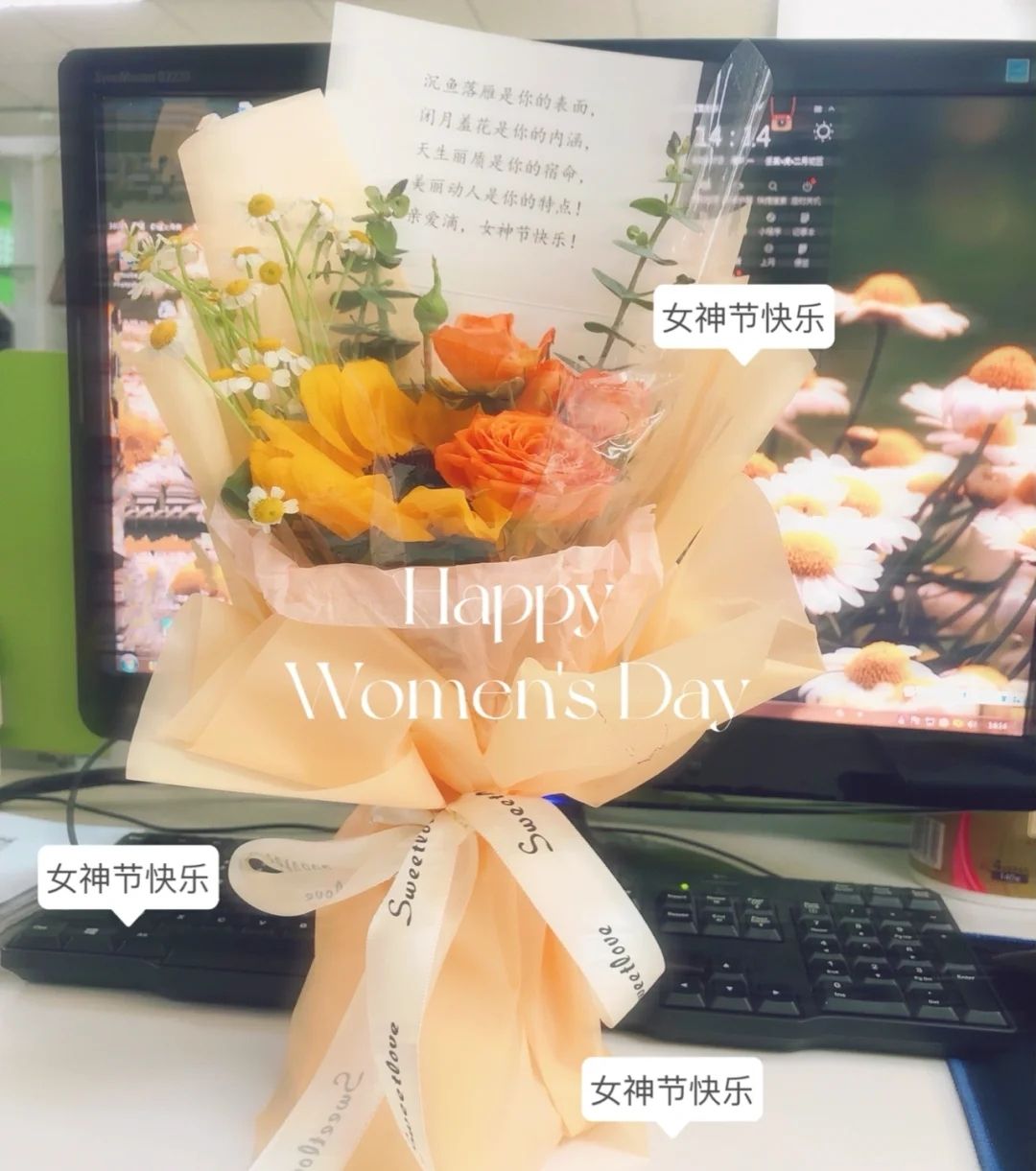 老公开窍了,哈哈哈,一大早在单位收到花了,美美的,美好的一天开始啦,也祝各位三八妇女节快乐啊