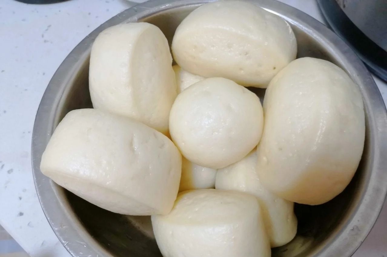 一大早自己蒸的馒头,卖相不咋样,味道还行!够吃一个星期了!