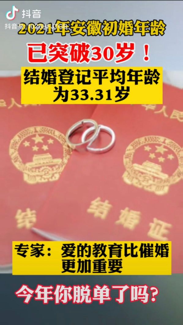 安徽初婚年龄已突破30岁,结婚登记平均年龄为33.31岁,今年你脱单了吗?