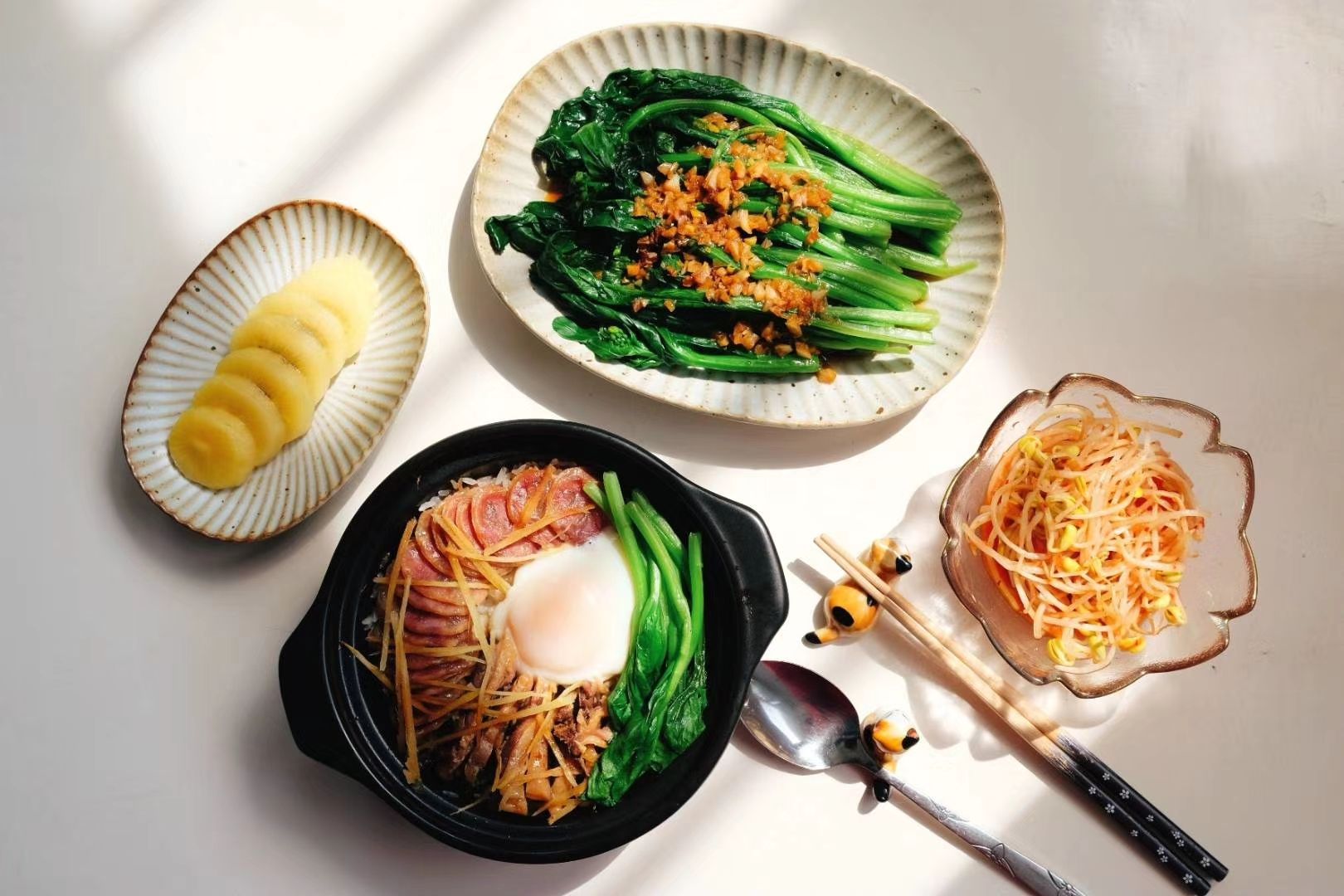 5/食材全熟锅巴也形成了,开锅加入蔬菜、淋酱汁(淘宝煲仔饭酱汁)。