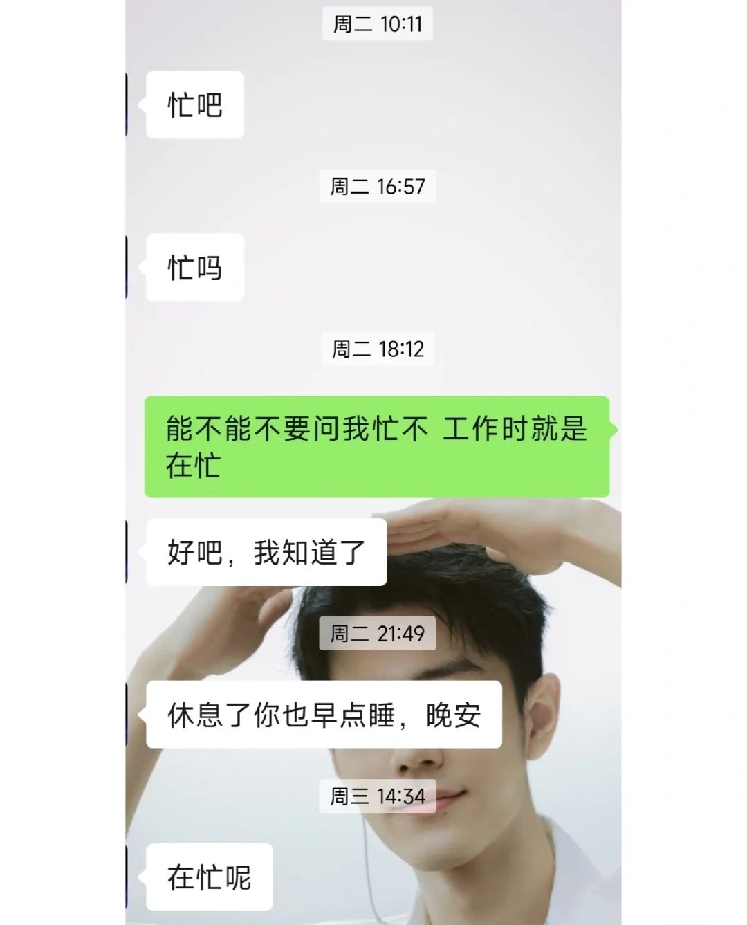 论相亲对象如何逼疯自己!我数了下,自从聊天开始,小一个月来,问了我接近90次“忙吗”,我说“忙”,他就说“你忙吧”;我说“不忙”,他就说“嗯”“那就好”。然后就没有然后了,就没有别的话来说。实在忍不了了,跟他说,不要问我忙不忙了,还是一直在问。给大家看一部分聊天记录,上周记录的。