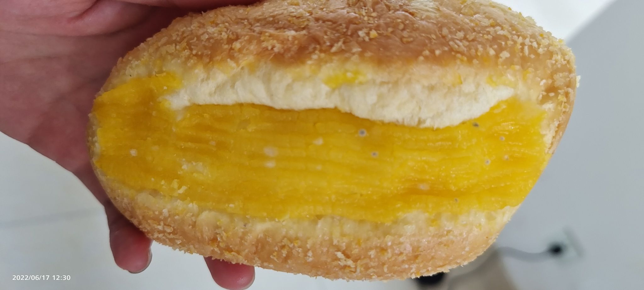 2022年6月16日18点多的时候,在凯玛特超市卖面包的地方,销售员表示她这个面包很好的,而且便宜。问了是不是今天生产出来的?对方表示不是今天生产出来的,是昨天(15日)生产出来的所以才能够特价。我随便看了看,就把它放进了推车里。