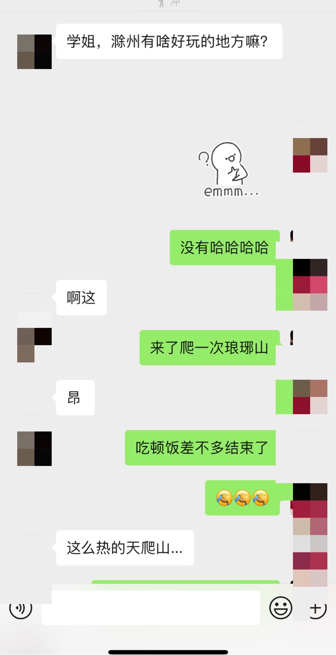 周五晚上给我发消息,说来滁州考试,说考完了一起出来玩吃个饭什么的,本打算拒绝的,但都是一个学校的,之前毕业有些事情害拖他帮忙的,欠了个人情就没拒绝了。现在想想当初还是我自己去弄吧,唉。