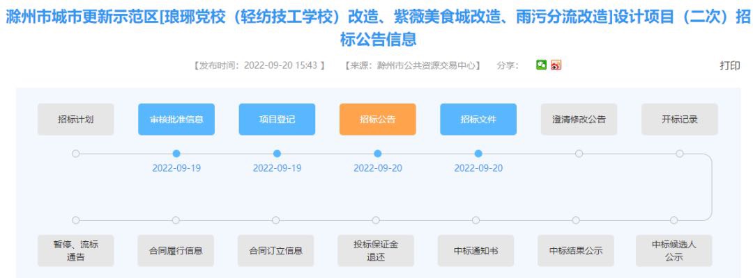滁州市城市更新示范区[琅琊党校(轻纺技工学校)改造、紫薇美食城改造、雨污分流改造]设计项目(二次)招标公告信息