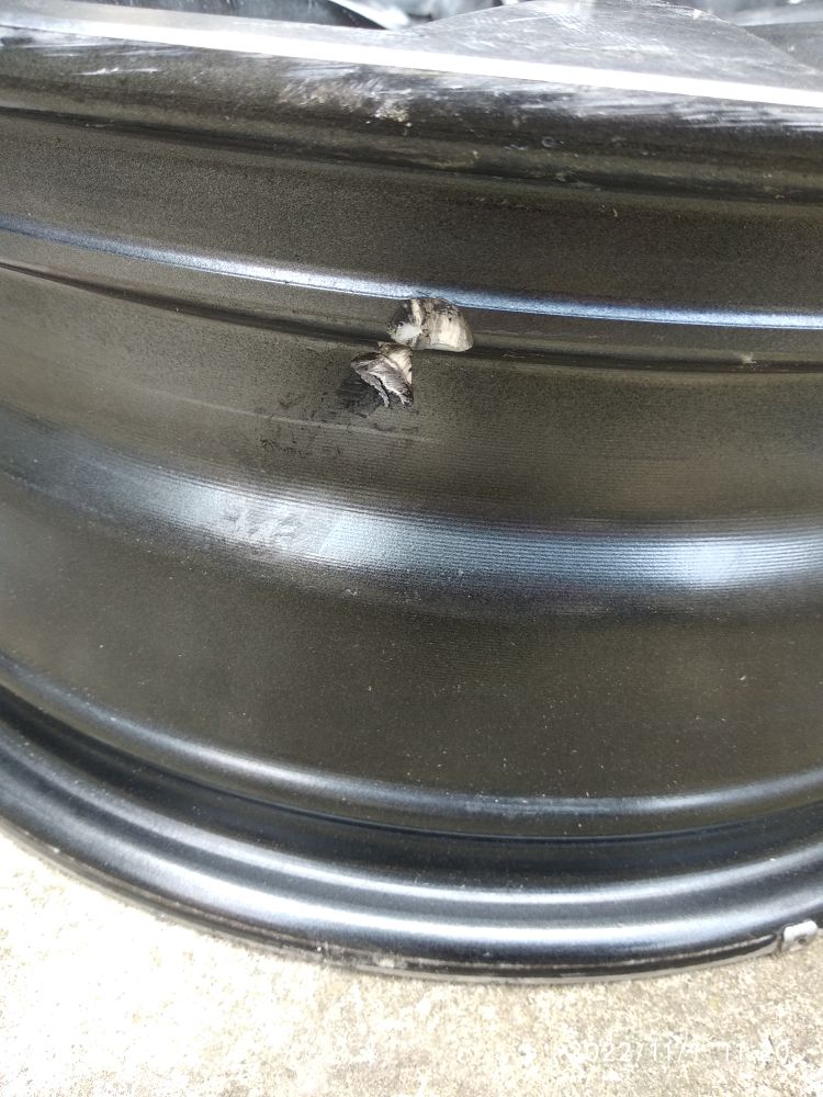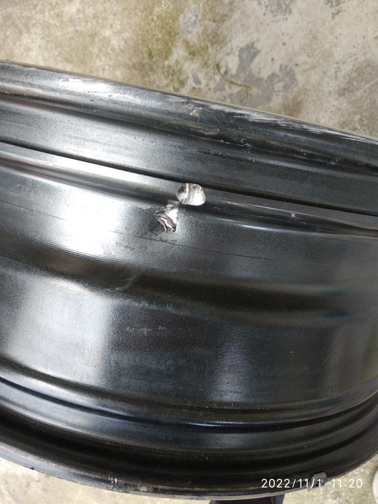 完蛋了,这下搞大了,三年没补过胎,这次搞了个大的。没办法要换轮毂了。但我怎么也想不通,就路面上的小石块能把轮毂干坏?我是菜鸟啊!我也不懂啊!