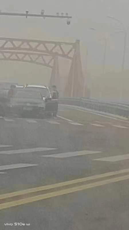 宝山路大桥车辆追尾,请过往车辆慢行。