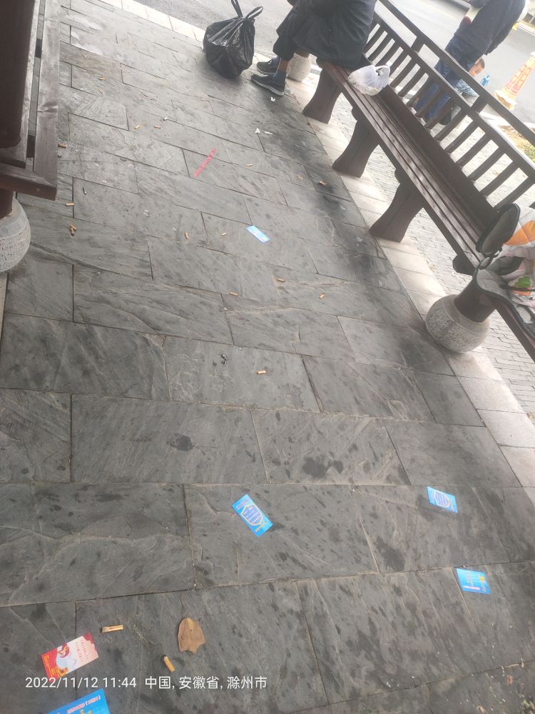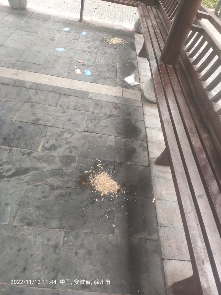 滁州中学凹字楼鼓楼社区广场地面垃圾很久无人管理,请有关部门尽快处理