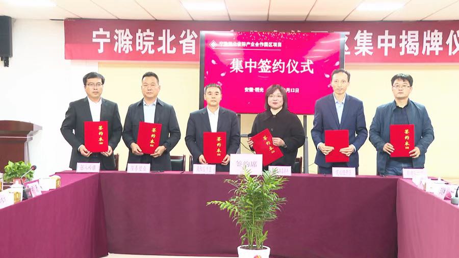 11月12日上午,江苏南京和安徽滁州在明光市共同举行宁滁皖北省际产业合作园区集中揭牌仪式。