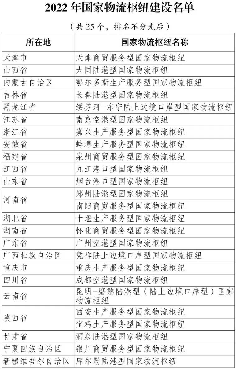 为认真贯彻落实党的二十大精神,按照“十四五”规划《纲要》关于“推进120个左右国家物流枢纽建设”的决策部署,近日国家发展改革委印发《关于做好2022年国家物流枢纽建设工作的通知》,将天津商贸服务型等25个国家物流枢纽纳入2022年度建设名单。