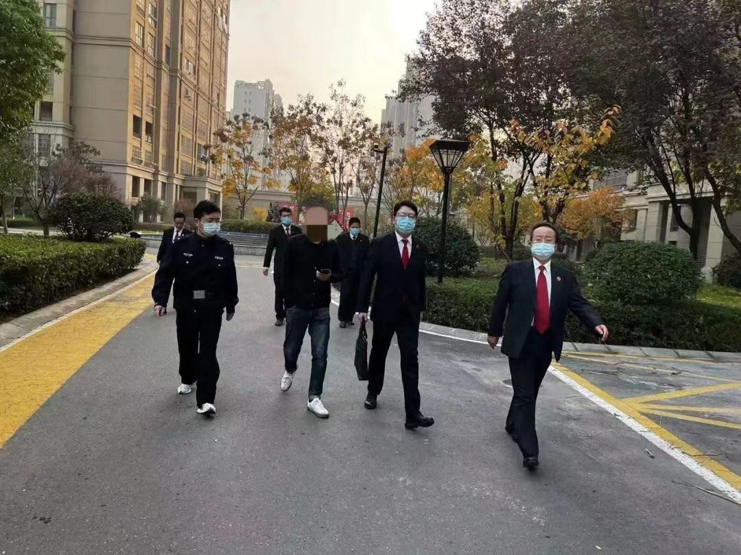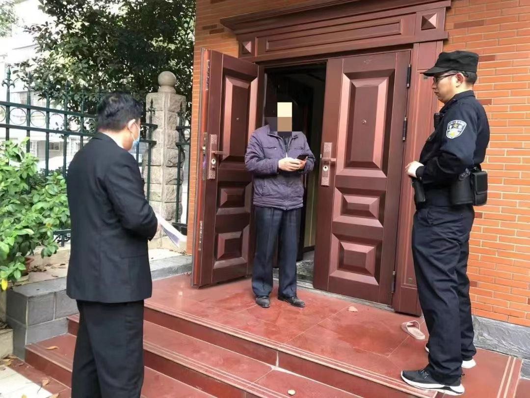 早上7点55分,执行干警到达被执行人晋某家门口,并将其依法拘传至法院。