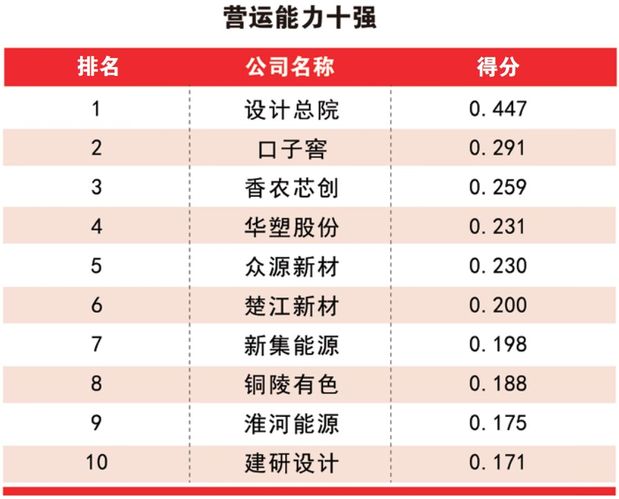 从营运能力排名看,口子窖、众源新材、楚江新材等持续保持高效运营态势,表现优异。香农芯创上升幅度最大。