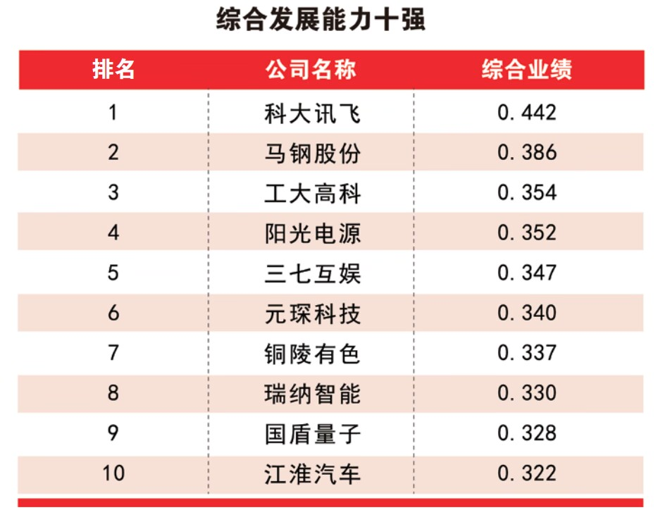 从综合发展能力排名来看,2021年科大讯飞、马钢股份、工大高科等上市公司综合发展能力较强。马钢股份、山鹰国际和国轩高科排名上升明显。