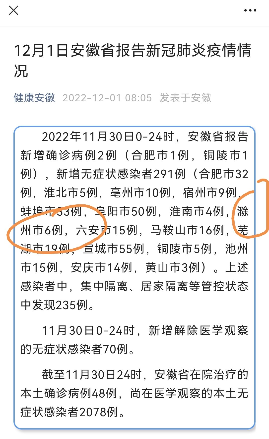 弱弱的问一下,这个官方新公布的滁州6例,具体是什么地方的?好想知道啊,心里有个底!