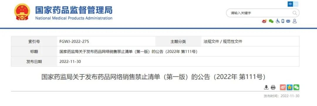 为保障公众用药安全,国家药监局官网近日发布了《药品网络销售禁止清单(第一版)》,自2022年12月1日起施行。