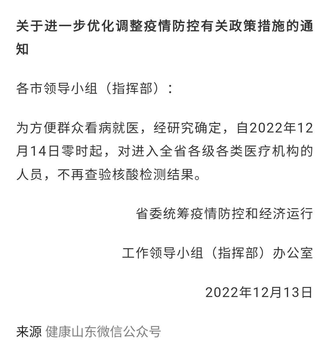 [焦点话题] 山东取消对进入医疗机构人员,核酸结果的查验了!在滁州看个病,真的挺难的 |