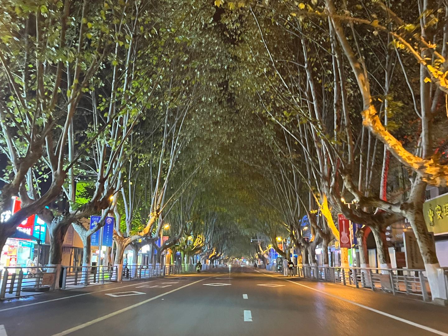 市中心天长路,繁华热闹的地方却忽然就安静下来,夜幕时分(8点多)街上已看不到什么人了,就仅剩几辆出租车还在街上行驶着,很多店家都早早关门了。希望能早日恢复曾经的模样!加油!