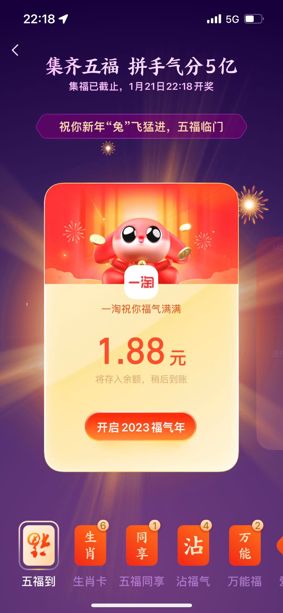 支付宝五福开奖啦,我是1.88,大家都是多少钱啊