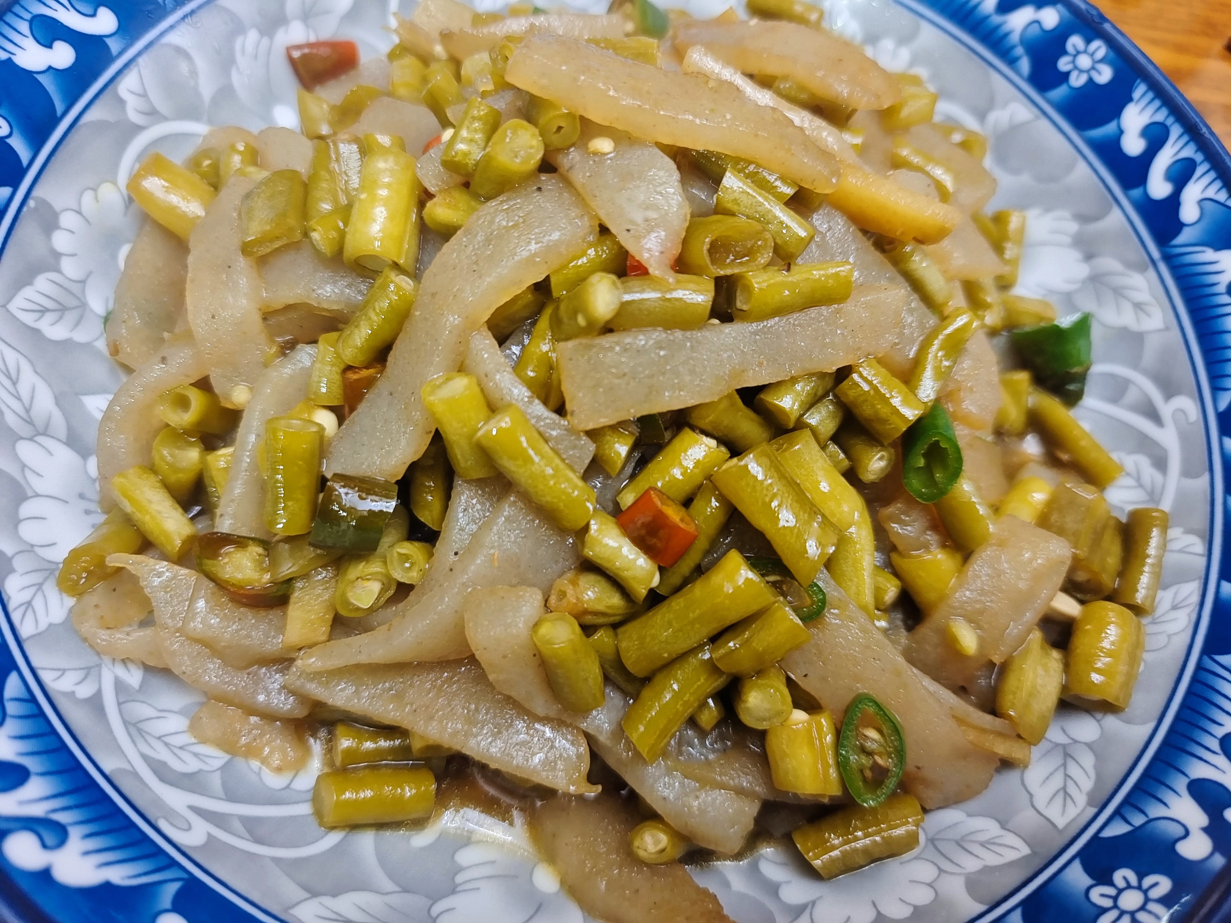 豇豆炒魔芋,辣辣的就酒一口接一口