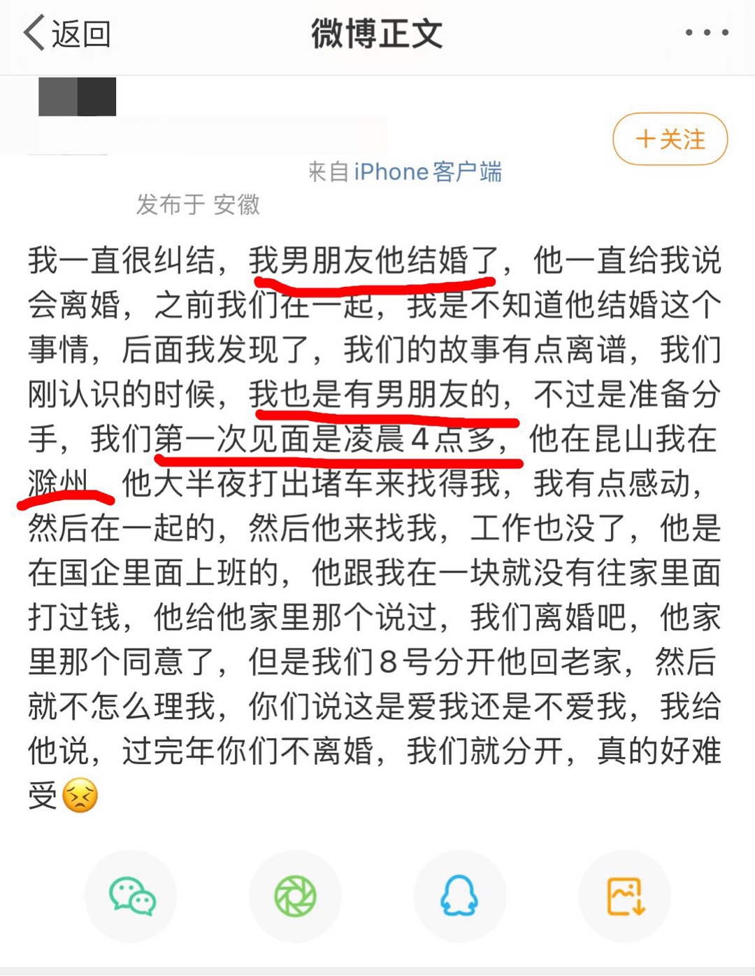 现在人感情观扭曲,当小三当的理直气壮,知道人家已婚,自己也有还没分手的男朋友,还凌晨四点第一次见面,男的也恶心,婚内出轨