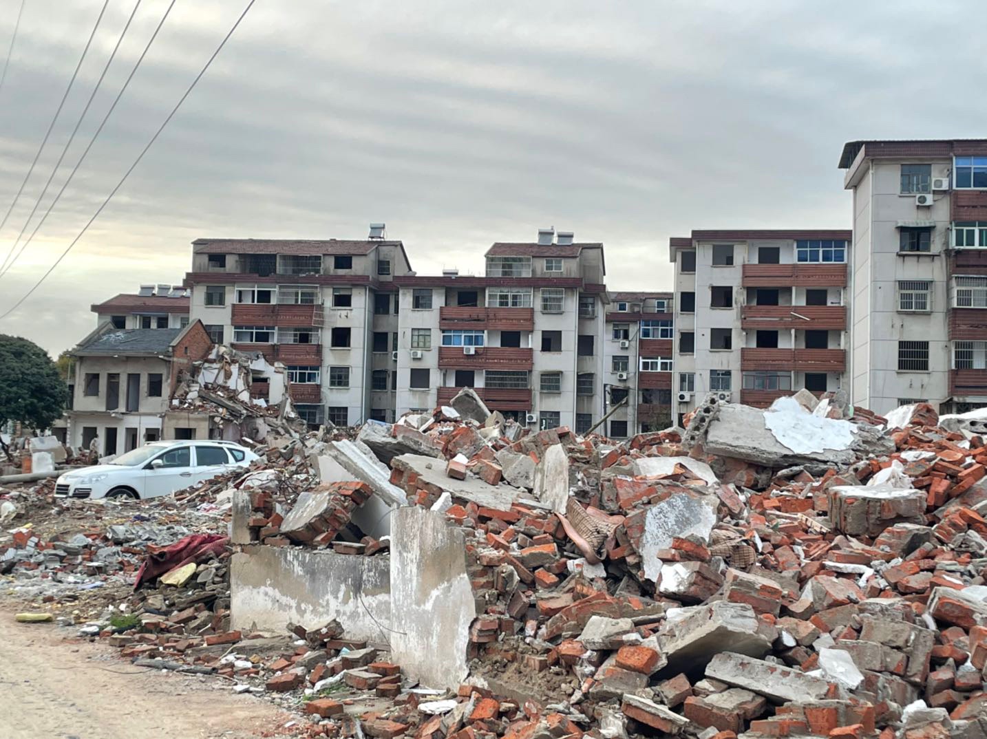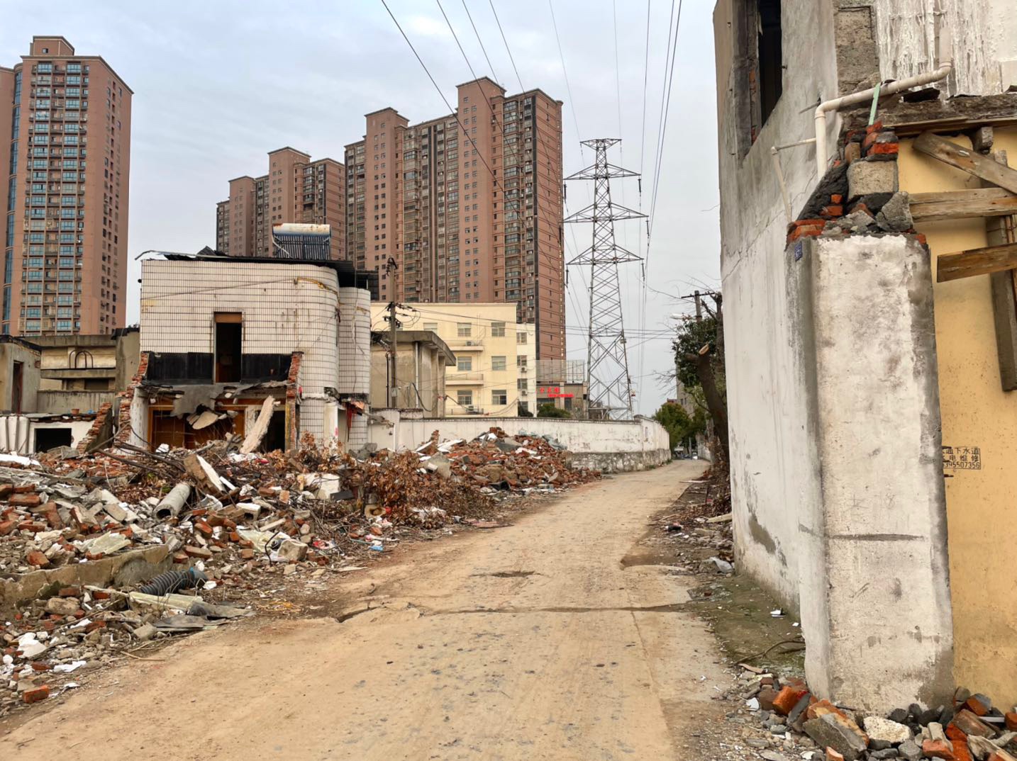 紫薇西村拆迁后一片废墟里还剩着一些没拆,为什么拆一半还留一半呢,人都搬走了
